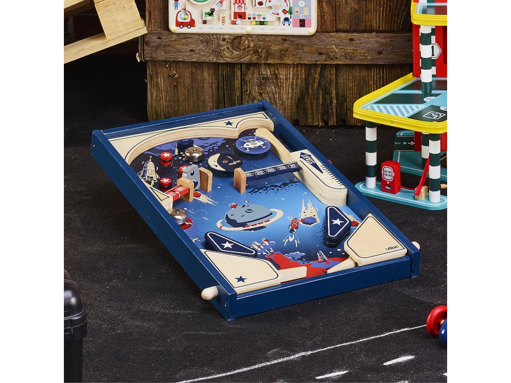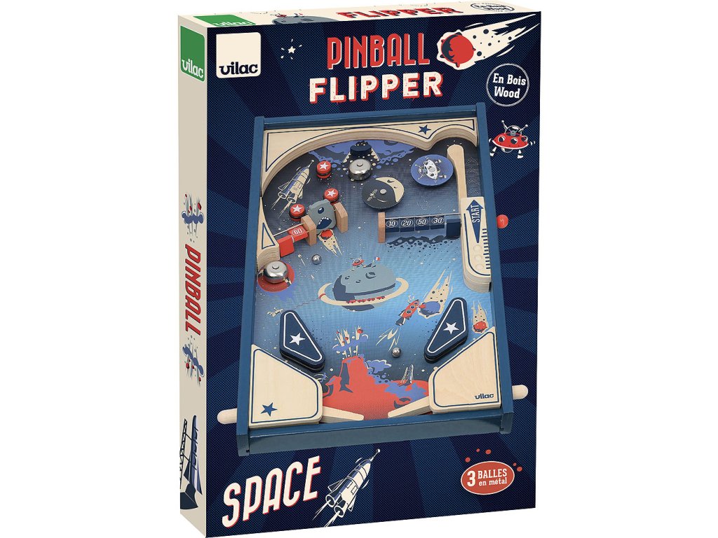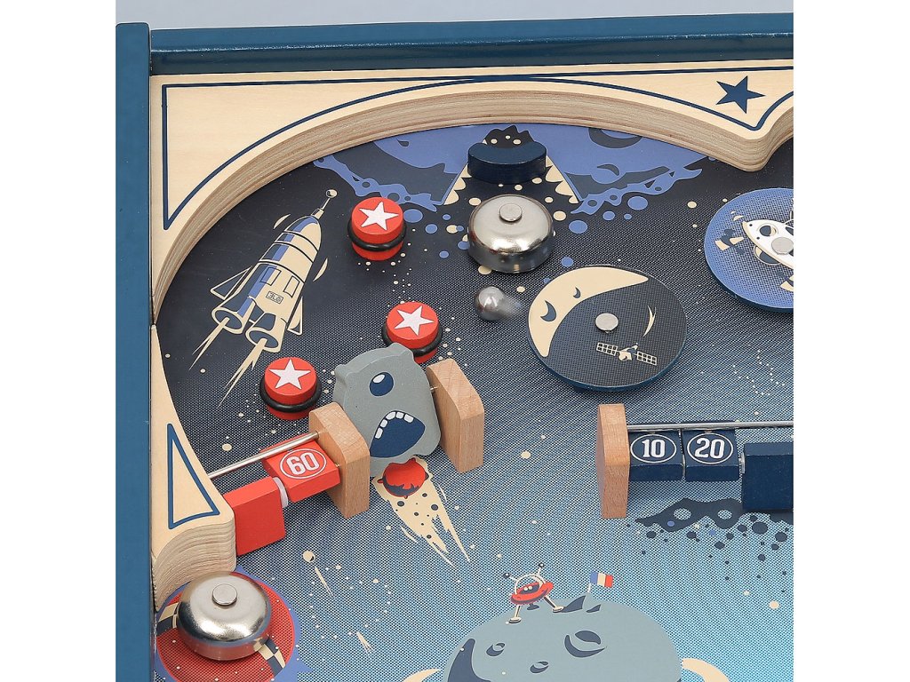 3, 2, 1… a letíme napříč vesmírem! Roztočte raketu, vesmírnou stanici a hlavy Marťanů uprostřed planet, jen dejte pozor na to, abyste brzy neztroskotali! Dřevěný stolní pinball poskytne dětem spoustu zábavy. A třešnička na dortu, tento pinball funguje bez baterií, vše je mechanické! Hlavní vlastnosti: zábavná postřehová hra rozvíjí motoriku dětíkovové kuličky se vystřelijí mechanickyoriginální retro vzhled