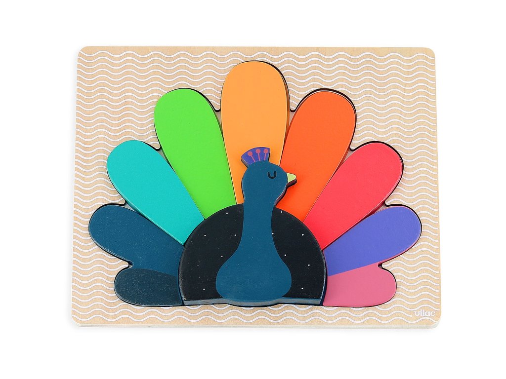Vkládací puzzle s motivem páva s pestrobarevným peřím. Na základní desce jsou místa pro vložení dílků barevně rozlišeny, aby děti mohly snadněji vložit dílek na správné místo. Učí se tak nejen jemné motorice, ale také rozpoznávání barev a tvarů. Malé děti tak mohou snadno uchopit robustní dřevěné kousky a vytvořit tak svého malého pavího kamaráda. Hlavní vlastnosti: obsahuje 12 dílkůrozvíjí senzomotorické vlastnosti dětídesign Andy Westface Andy Westface je ilustrátor žijící a působící v Hongkongu. Svou prací se snaží zprostředkovat silné pocity a jasné myšlenky za pomoci jednoduchých tvarů, kompozic i barevnosti. Typickými prvky jeho děl jsou zvířata a duha, které si oblíbil pro jejich čistotu, upřímnost a schopnost vzbuzovat radost.