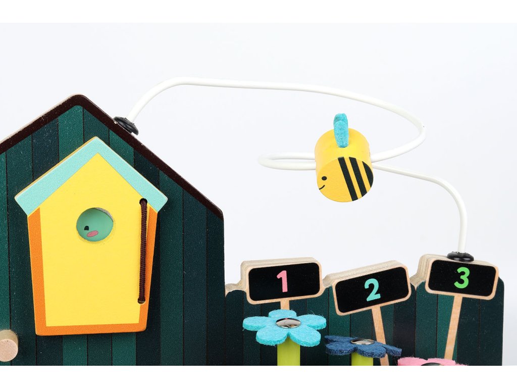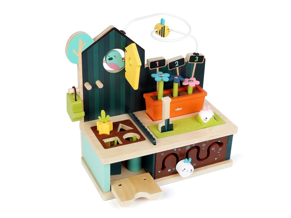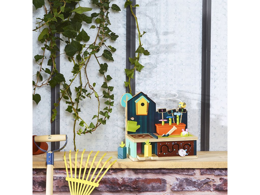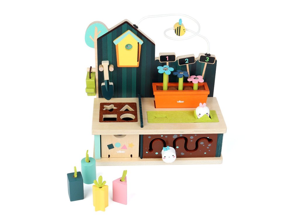 Přiveďte své dítě zpět k přírodě se zahradní multi-aktivitní hračkou, inspirovanou venkovským životem. Zahrádka je nejenom dekorativní, ale také nabízí mnoho aktivit pro Vaše dítě, přičemž mu umožňuje "dělat věci jako dospělí". S květinami k zasazení, zeleninou k sklizni, včelou, která cestuje po kovovém drátě, Vaše dítě během hraní zažije spoustu zábavy. Když použije lopatku, králíček vyleze ze svého doupěte. Zahradní multi-aktivitní hračka perfektně zapadá do naší řady hraček inspirovaných přírodou, jako je zahrada nebo zelinářství. Ideální hra pro malé zahradníky. Obsahuje: 3 květiny k zasazení,1 dřevěná lopatka,1 dřevěná konev,4 barevné dřevěné zeleniny. Multifunkční zahrádka poskytuje dětem bohaté smyslové podněty, což podporuje rozvoj jejich hmatu, zraku a sluchu. Ideální hračka pro metodu Montessori. Jsou to speciálně navržené hračky, které vycházejí z pedagogické metody vyvinuté italskou lékařkou a pedagožkou Marií Montessori. Tyto hračky jsou navrženy tak, aby podporovaly přirozený vývoj dítěte a umožňovaly jim objevovat svět okolo sebe pomocí vlastního zájmu a aktivity. Montessori pedagogika klade také důraz na respekt k individuálnímu rytmu každého dítěte. Rozvíjí také psychomotorické dovednosti a podněcuje dětskou fantazii. Díky němu si dítě může hrát a učit se mnoho hodin. Přírodní dřevo použité při výrobě zajišťuje bezpečnost a krásný nadčasový vzhled, perfektní doplněk při zařizování dětského pokoje. Při hře se děti učí sdílet, spolupracovat a komunikovat. To podporuje rozvoj sociálních dovedností a přípravu na interakce s vrstevníky. Hlavní vlastnosti: podporuje rozvoj jemné motoriky a koordinace ruky a okapodněcuje kreativní myšlení a vývoj představivostiideální hračka pro metodu Montessorihra pro malé zahradníkysenzorická stimulaceedukace skrze hru