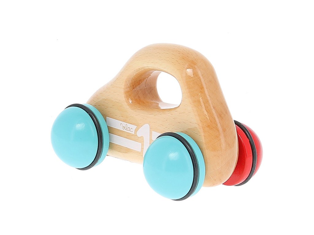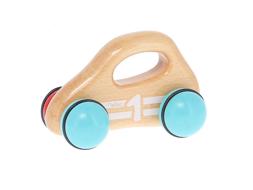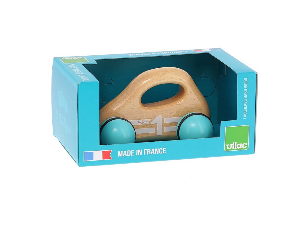 Závodní auto speciálního dizajnu, vyrobeno z přírodního lakovaného dřeva s dvojbarevnými pogumovanými koly. Je vhodné jak ke hraní tak jako dekorace do pokojů dětí či dospělých. Vyrobeno ve Francii. Hlavní vlastnosti: vyrobeno ve Francii