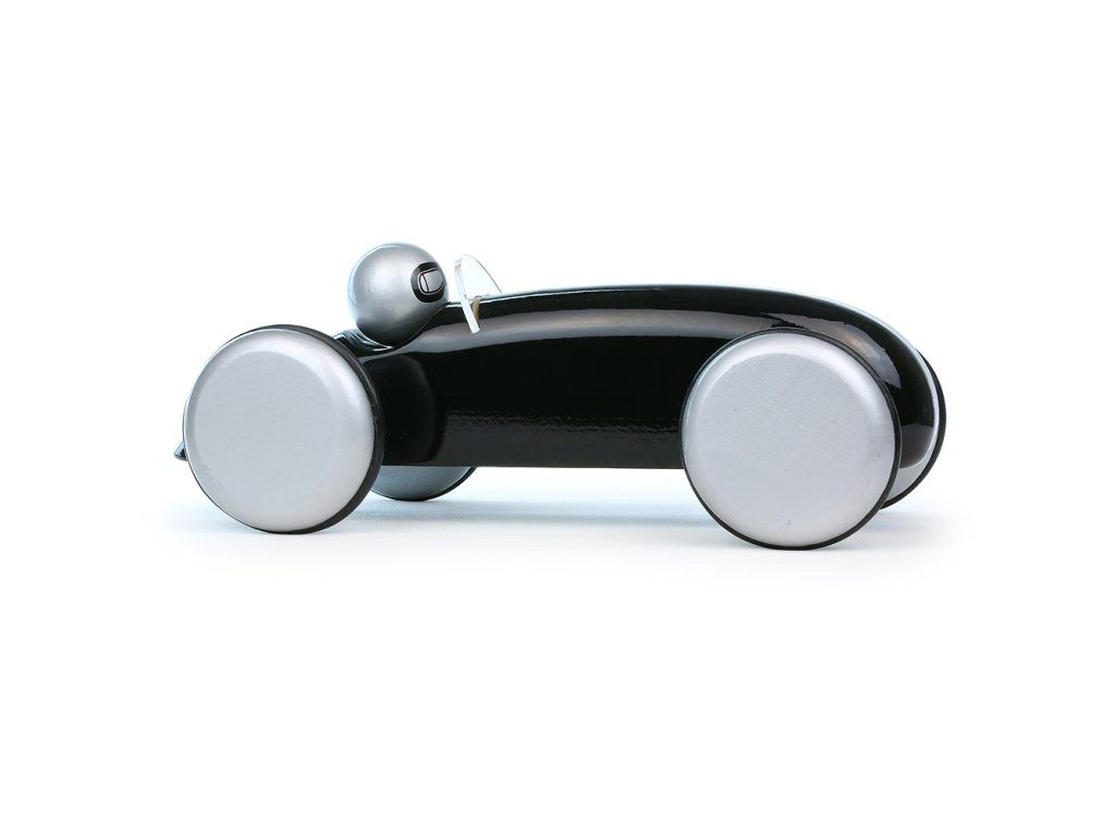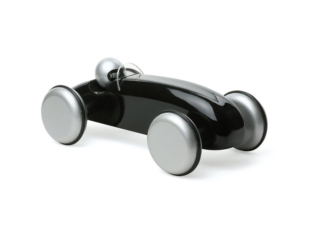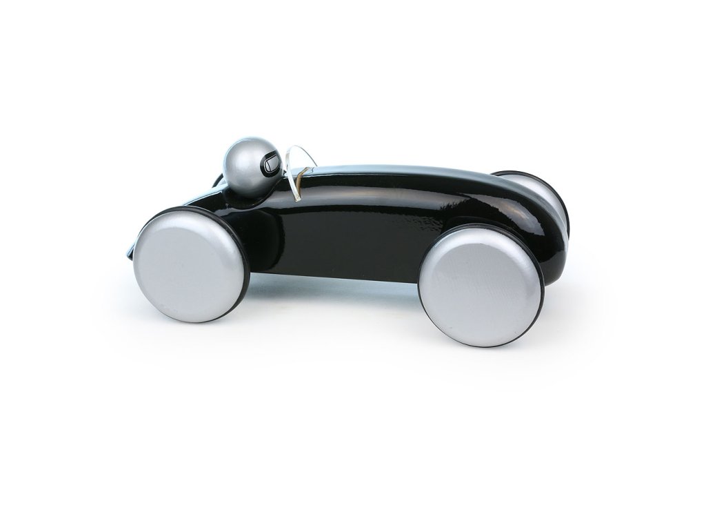 Černé závodní auto vyrobeno z lakovaného dřeva. Je vhodné jak ke hraní tak jako dekorace do pokojů dětí či dospělých. Vyrobeno ve Francii. Hlavní vlastnosti: vyrobeno ve Francii