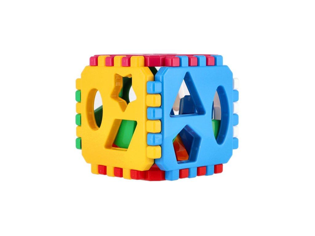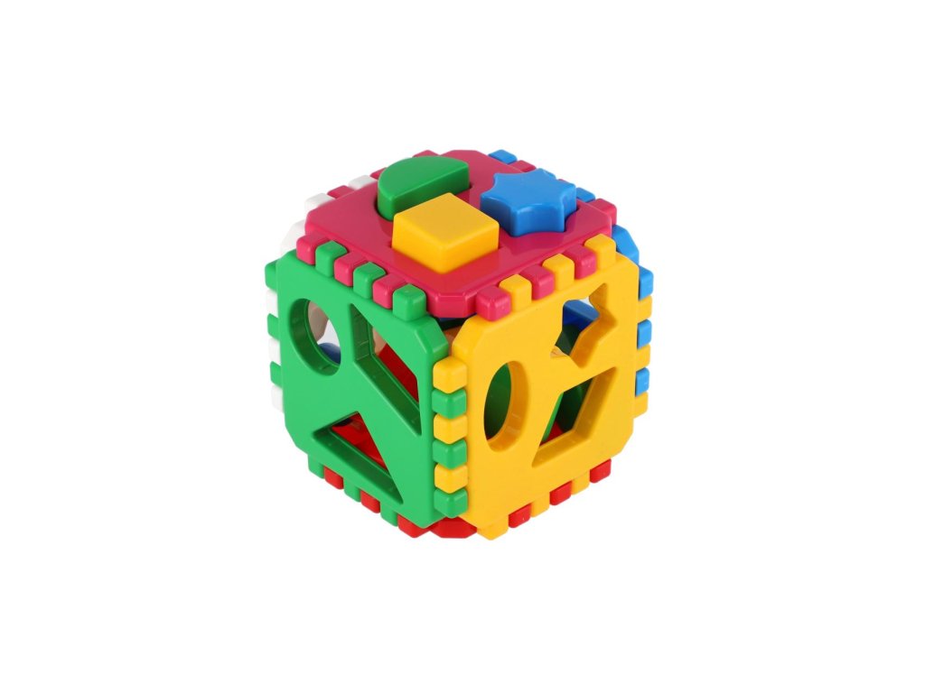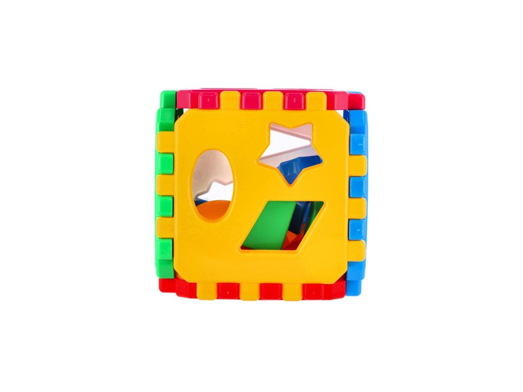 Klasická plastová vkládací kostka, která obsahuje 6 stran spojené ozubenými okraji. Tato jednoduchá hra rozvíjí zábavnou formou trpělivost, orientaci v celku, logické myšlení a motoriku. Dítě při hře získá další důležité dovednosti. Balení obsahuje: skládací tvary pro kostku a tvary, které lze prostrkávat otvory.