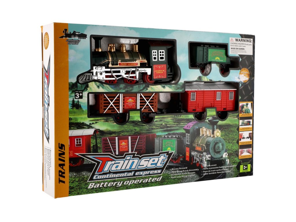 Tato super vlaková souprava kolejemi nadchne jistě každého kluka. Postav si trať a nech vláček jezdit. Občas nezapoměň zastavit a nechat vystoupit a nastoupit nové cestující... Balení obsahuje: lokomotivu, které svítí světla, 3 vagónky, 6 ks zatáček a 2 ks rovných kolejí. K provozu jsou třeba 2 x AA baterie do mašinky (nejsou součástí).