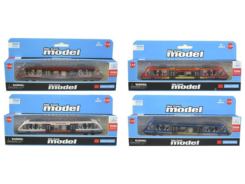 Pěkná vlaková souprava metra z kovu a plastu, na volný chod, ve čtyřech variantách provedení, pro všechny fandy do městské hromadné dopravy a do vláčků. Baleno v krabici.