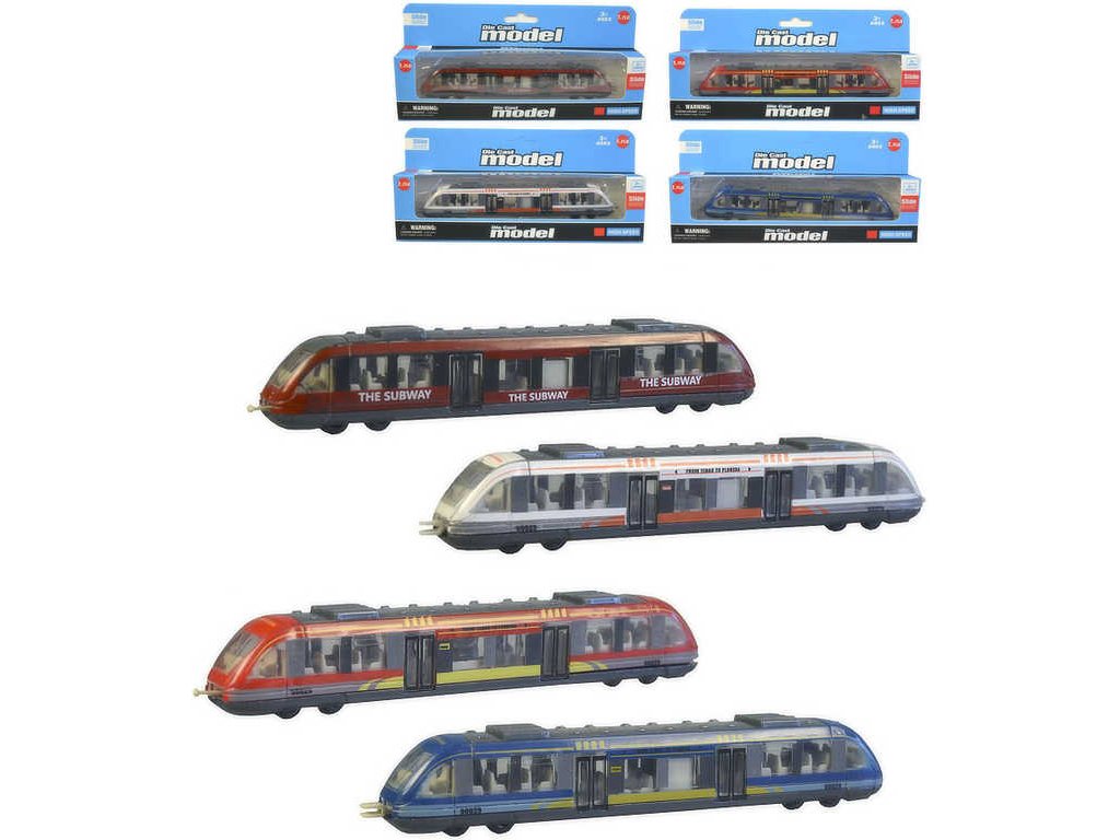 Vlaková souprava Metro kovová 17cm volný chod 4 druhy v krabičce