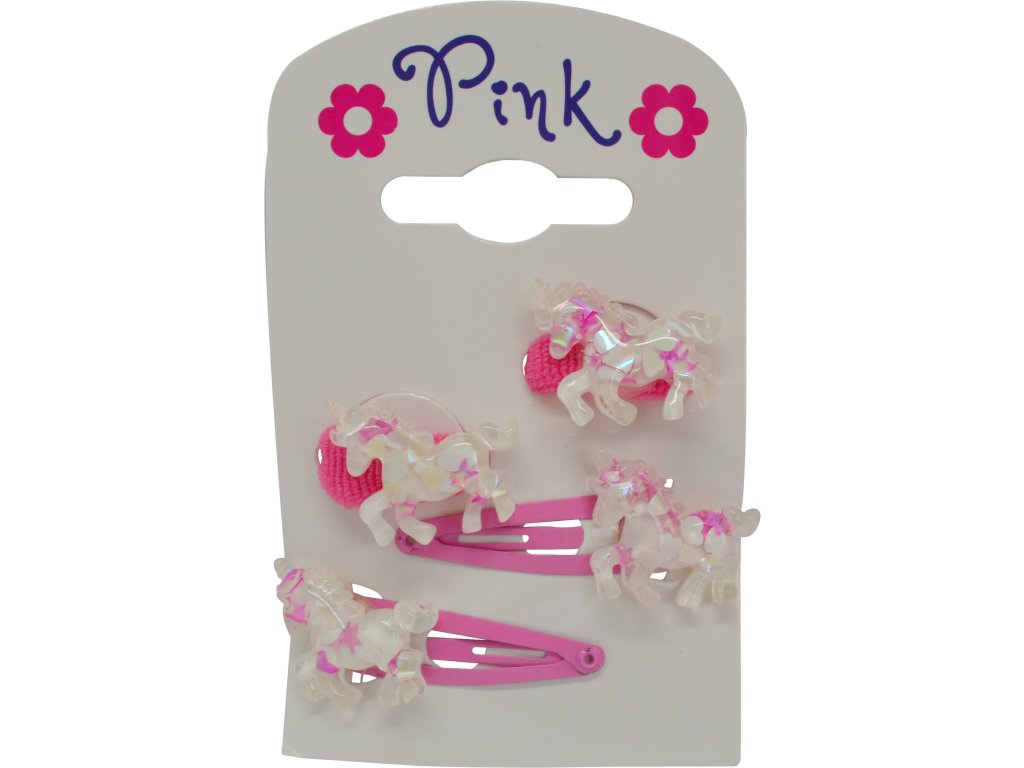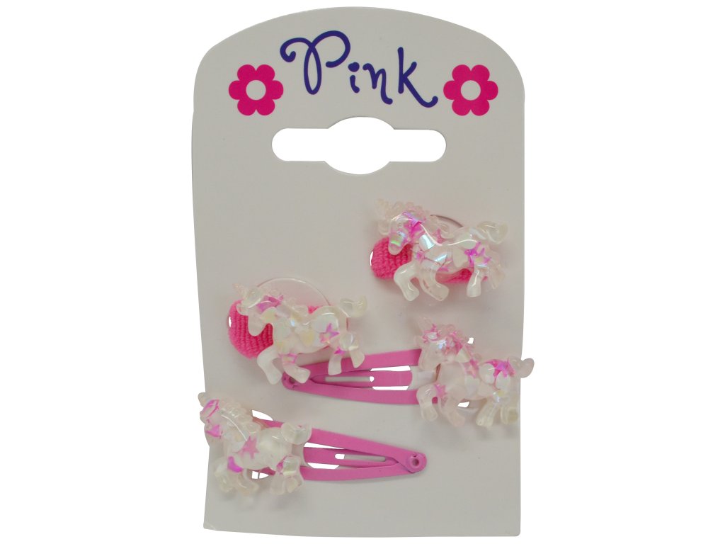 Vlasové doplňky Jednorožec - sada 4 ks (2 sponky, 2 gumičky)
