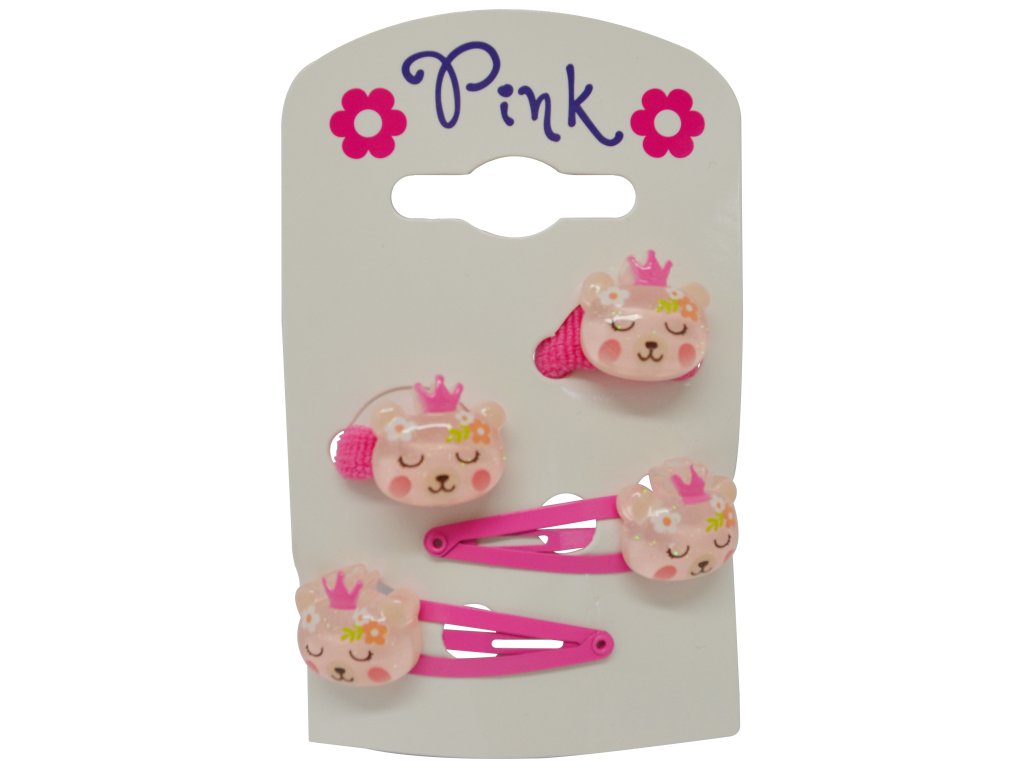 Vlasové doplňky Medvídek - sada 4 ks (2 sponky, 2 gumičky)
