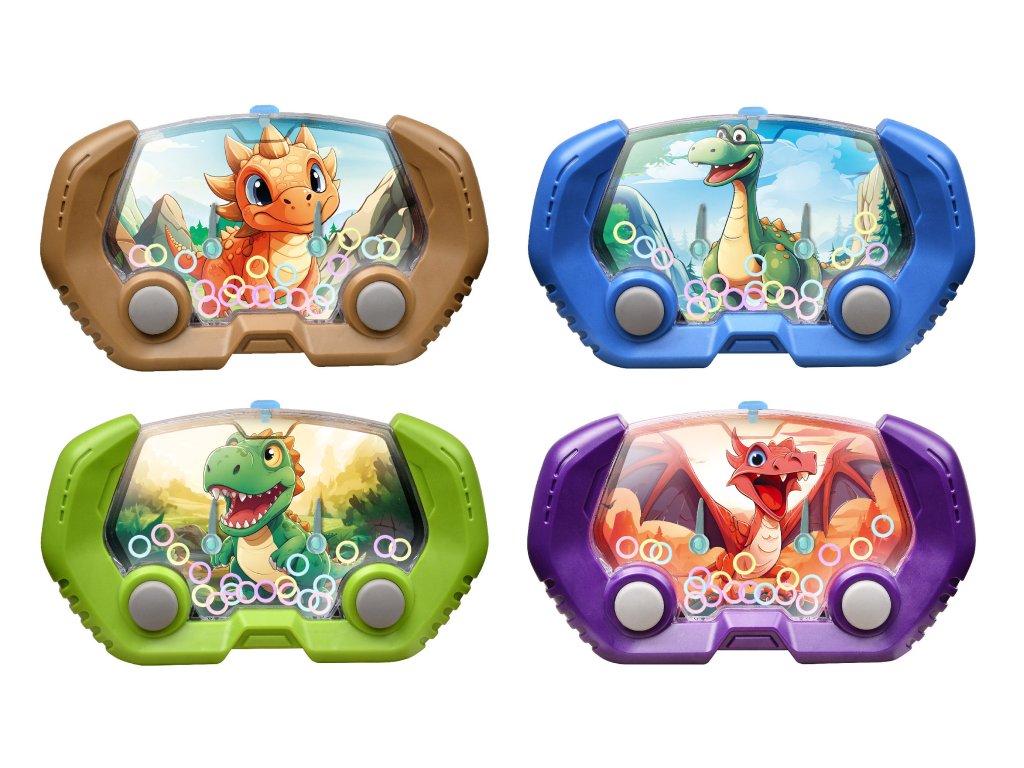 Vodní hra dino. Rozměry 17x10x3 cm. 12 ks display box. 4 varianty - hnědá, zelená, modrá, fialová.