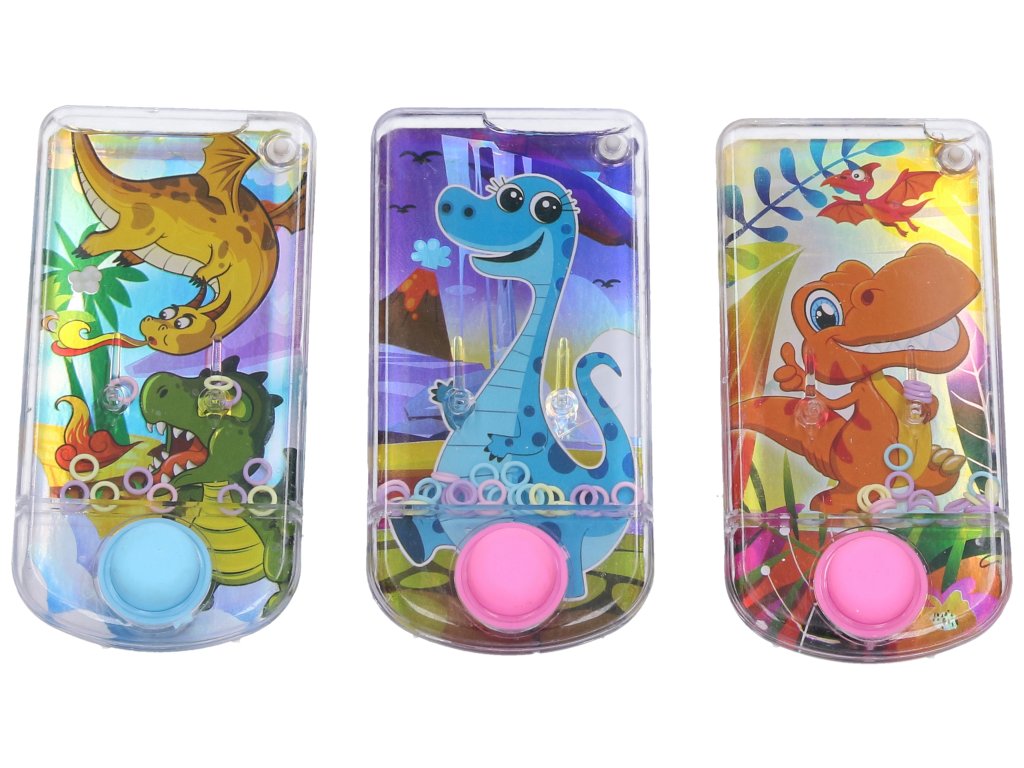 Vodní hra dinosaurus 6,5x13,5 cm. 24 ks display box. 3 varianty - modrý, žlutý, oranžový.