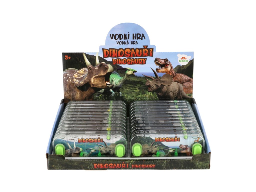 Vodní hra hlavolam 15,5x7cm plast dinosaurus 4 druhy 24ks v boxu
