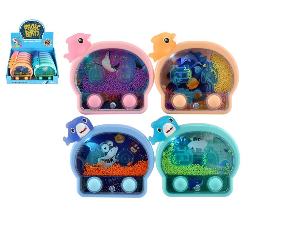 Vodní hra hlavolam svítící mořské zvířátko plast 13x12cm na baterie 4 barvy 12ks v boxu
