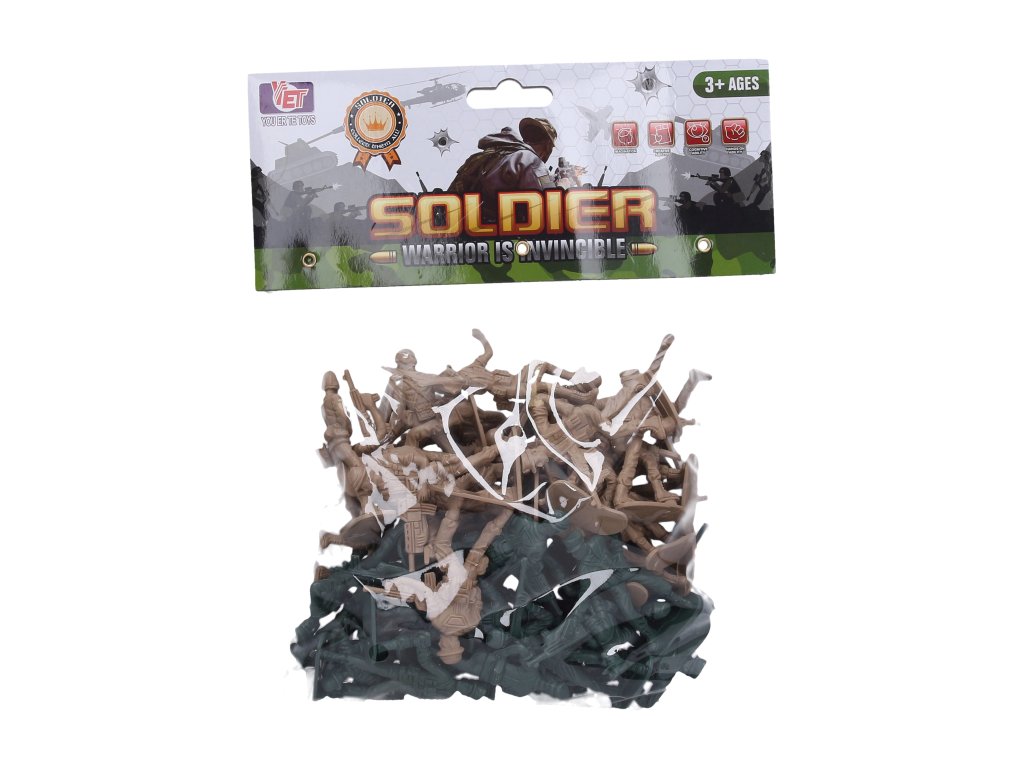 set. Sada figurek vojáků, hnědá vs zelená. Velikost vojáčka 7 cm. Balení obsahuje 48 ks.