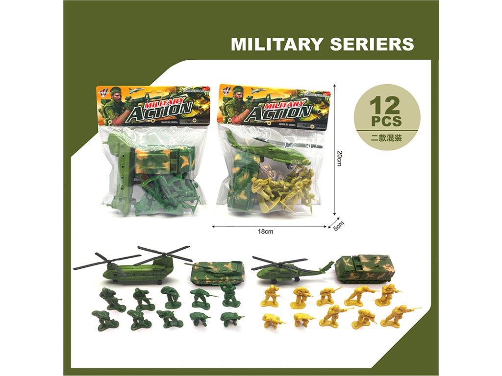 10 vojáčků a 2 vojenská vozidla. Vyrobeno z plastu.