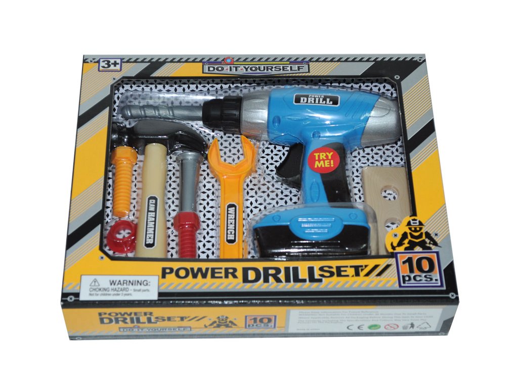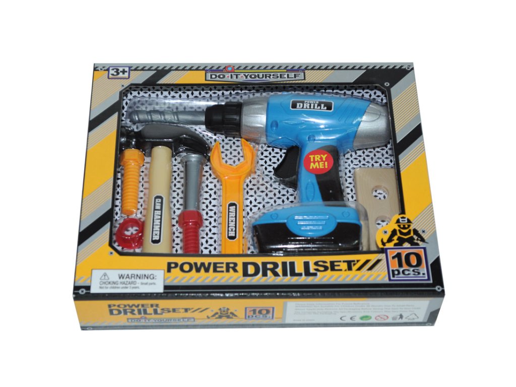 - Vrtačka set - 10 ks Sada nářadí. Skvělá hračka pro kluky - malé kutily! - Menší sada s nářadím a funkční vrtačkou. Sada obsahuje vrtačku, které se po zmáčknutí tlačítka rychle točí vrták. Dále jsou v sadě: kladívko, šrouby, matky, klíč, ... - Hračka je vyrobená z velmi kvalitního plastu. - Sada nářadí obsahuje 10 ks. - Rozměry kufříku: 28x23x5,5cm - Věk 3+