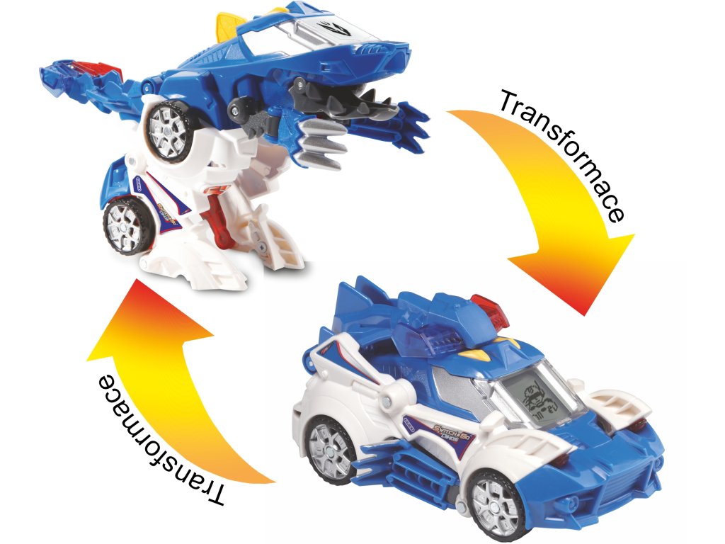 V okamžiku se tento zuřivý dinosaurus dokáže proměnit na superrychlé policejní auto i s houkačkou! Displej s animacemi se mění v závislosti na režimu hry: Dinosauří tvář nebo superpolda v režimu policejního speciálu.