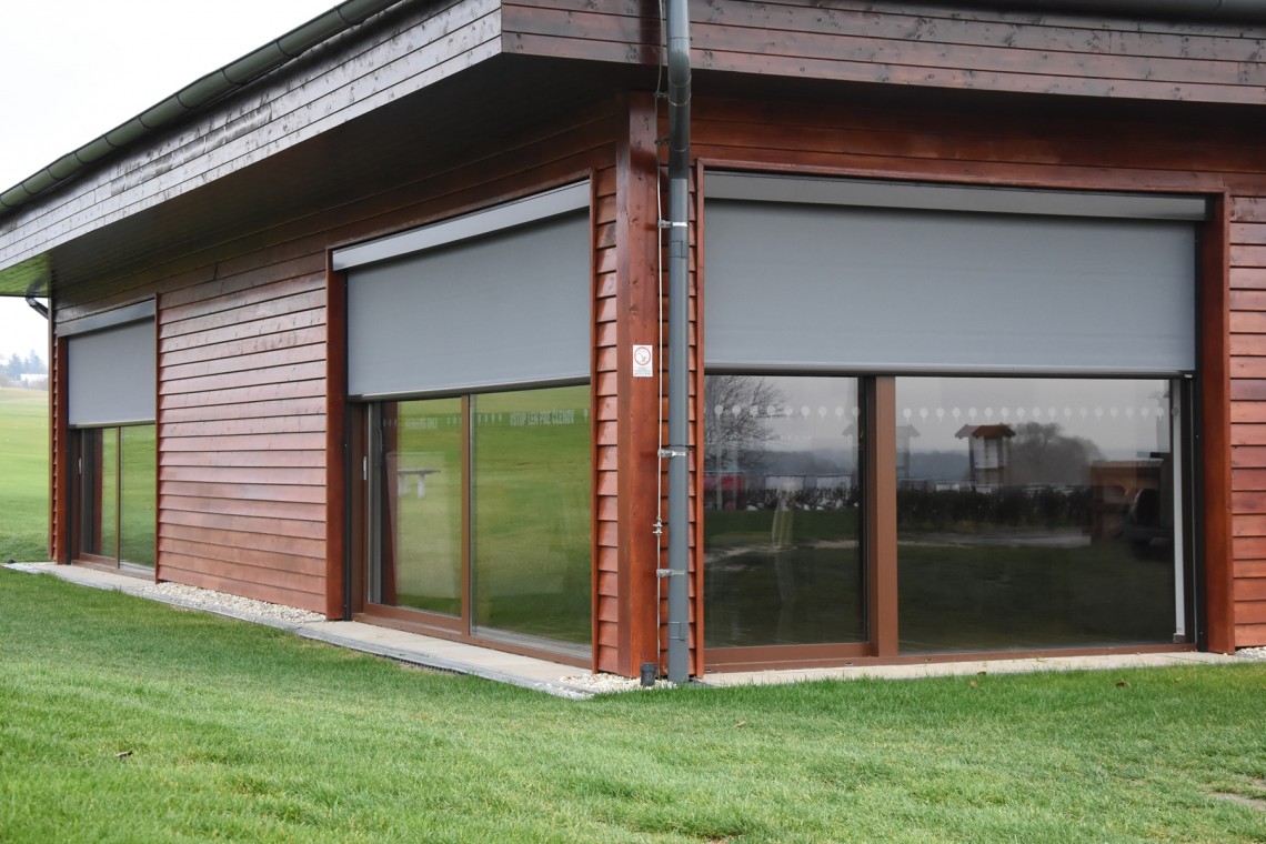 - Přiznaná montáž – roleta je viditelná a tvoří designový prvek fasády.