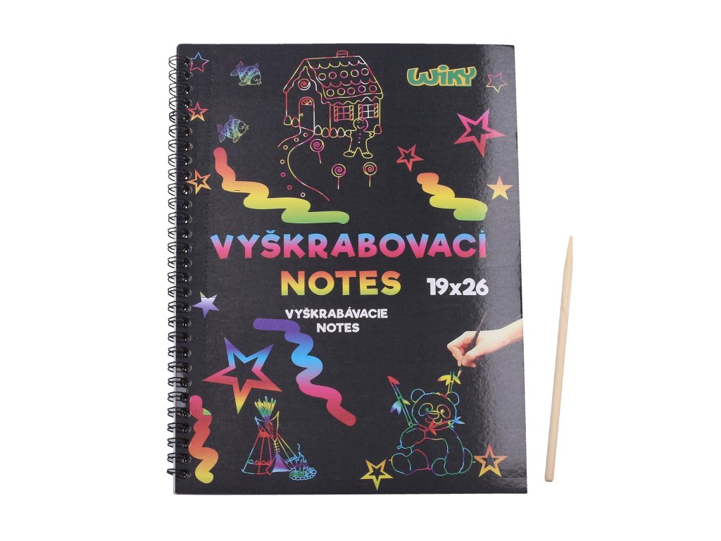 Kreativně se vydovádějte na vyškrabovacím notesu, který má rozměry 19x26 cm. Na jednotlivých listech, můžete pomocí vyškrabovacího pera vytvářet různé pestrobarevné obrázky.