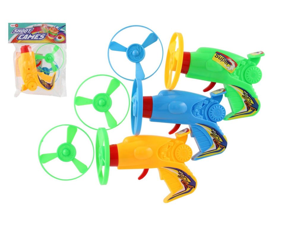 Vystřelovací vrtulka + startér pistole plast 12cm 3 barvy v sáčku