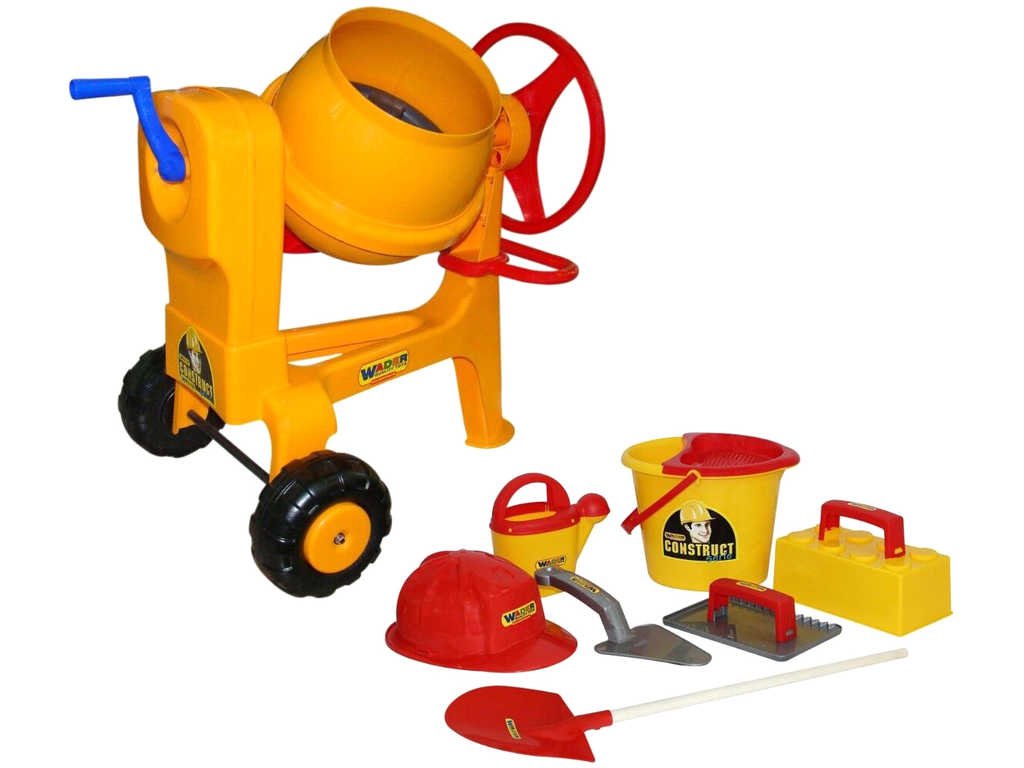 WADER Dětská míchačka Construct žlutá s přilbou a zednickým nářadím 50649