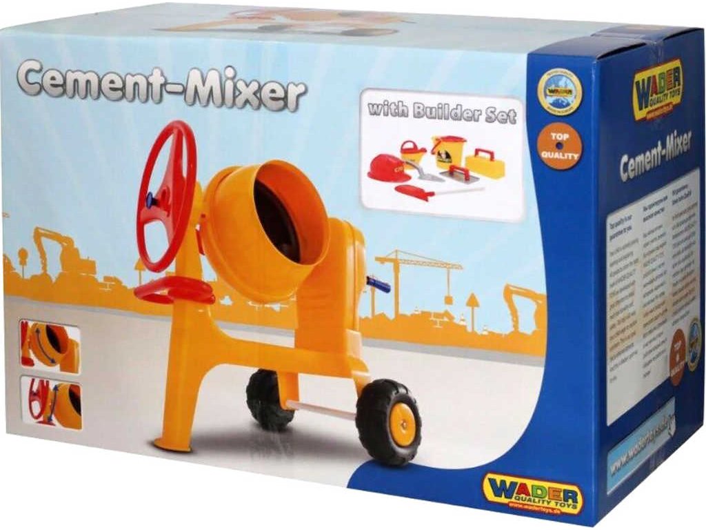 WADER 50649 - Míchačka dětská plastová maxi žlutá na kolečkách + zednické nářadí. Zahradní míchačka s kolečky na písek z plastu pro děti, pro všechny malé stavitele, na stavbu či zahradu.