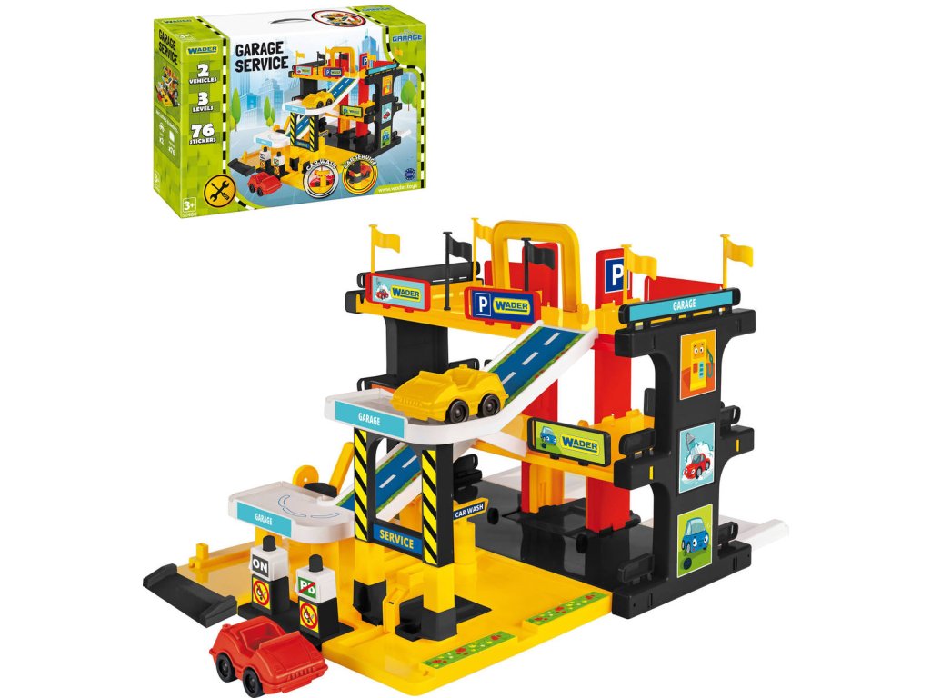 WADER Garáž 3 patra se servisem a myčkou herní set se 2 auty plast