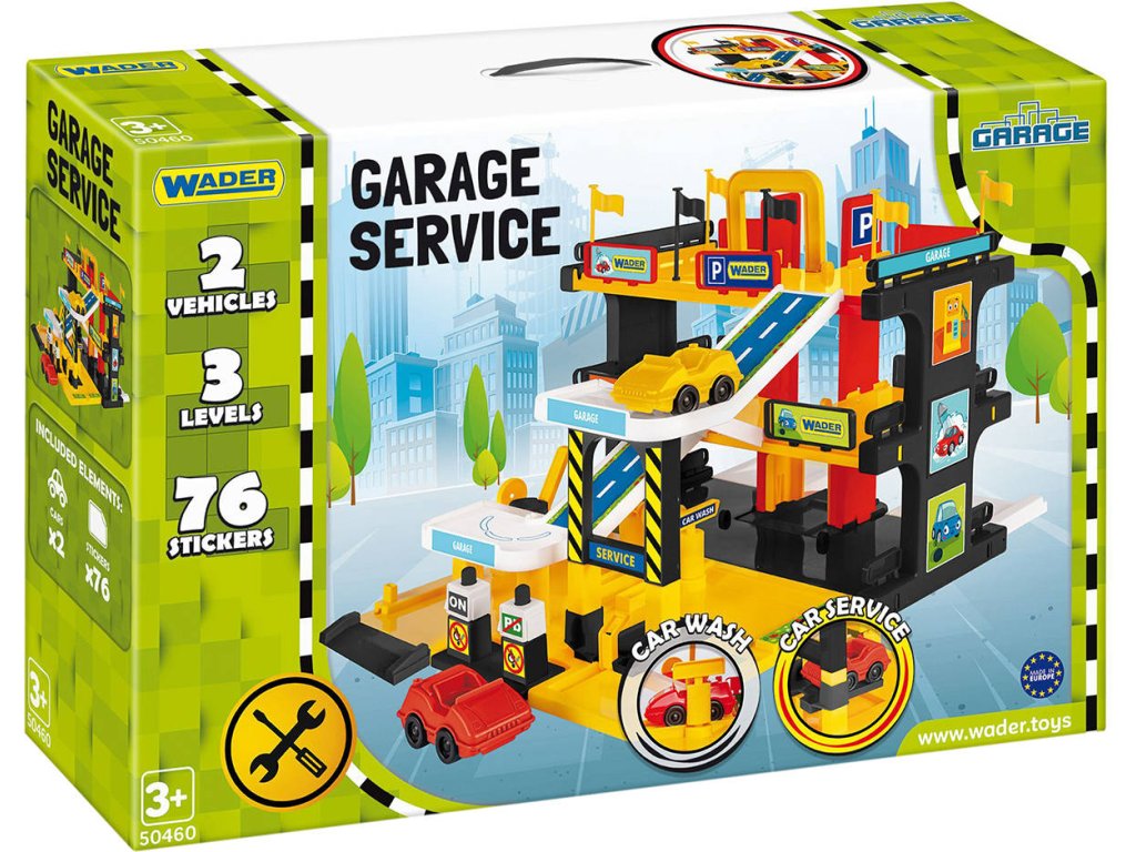 WADER Garáž 3 patra se servisem a myčkou herní set se 2 auty plast