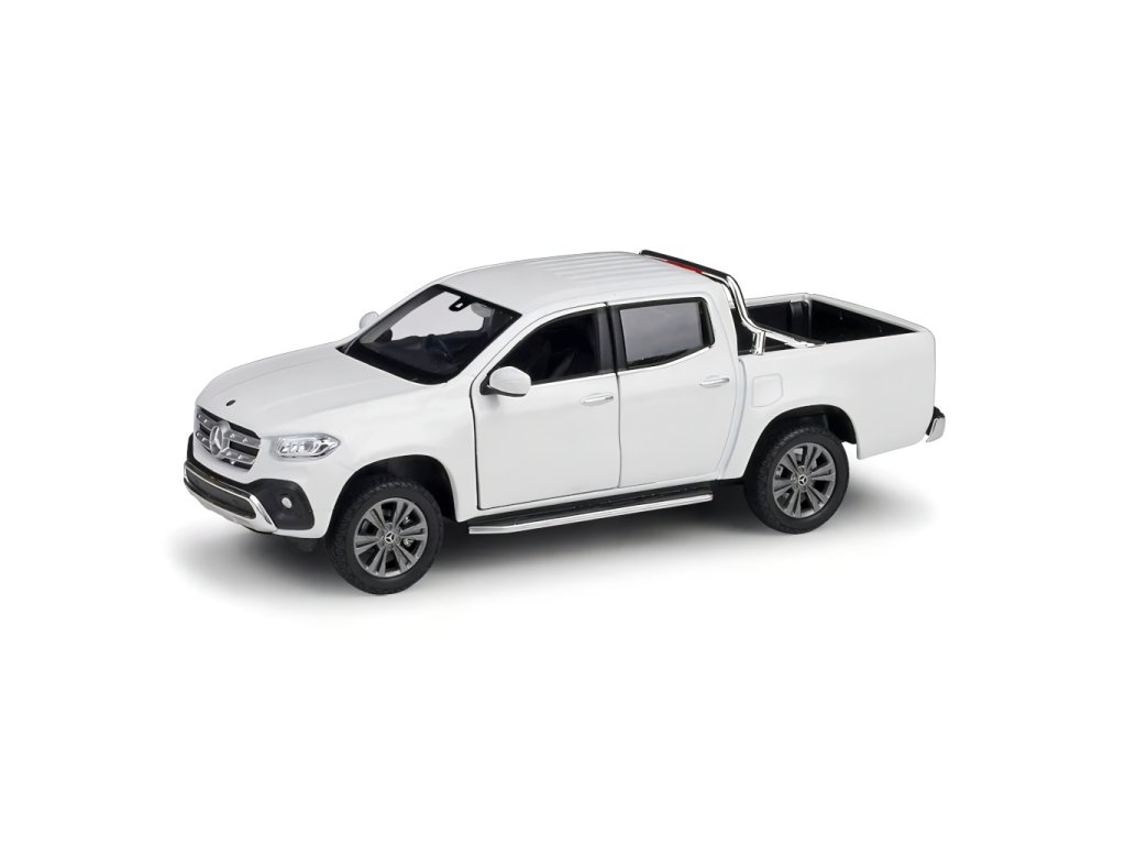 Detailní model Mercedes Benz X‑Class z kovu a plastu má otevíratelné dveře i kapotu. Věrnost těchto modelů zvyšuje použití laků, které mají shodný barevný odstín jako skutečná auta. Konkrétní barvu si můžete zvolit z nabízených možností. Měřítko 1:27 je zhotovením na hraně mezi sběratelským modelem a hračkou, autíčka vyžadují opatrnější zacházení. Dodáváno v různobarevné papírové krabičce s plastovým průhledem. Hlavní vlastnosti: kovová karoserieotevíratelné dveře a kapota
