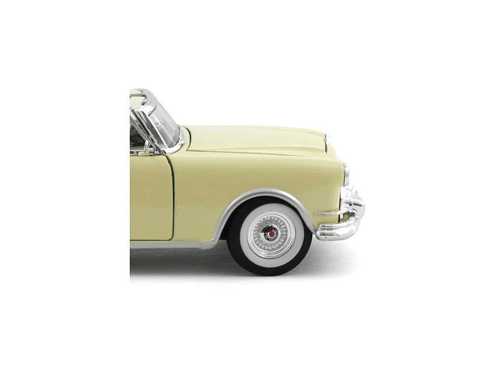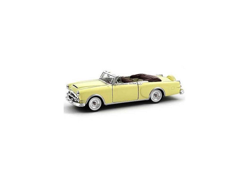 Detailní model Packard Caribbean z kovu a plastu. Věrnost těchto modelů zvyšuje použití laků, které mají shodný barevný odstín jako skutečná auta. Měřítko 1:28 je zhotovením na hraně mezi sběratelským modelem a hračkou, autíčka vyžadují opatrnější zacházení. Dodáváno v různobarevné papírové krabičce s plastovým průhledem. Hlavní vlastnosti: kovová karoserie