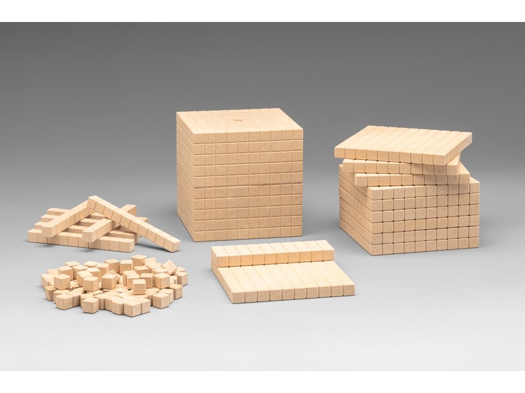 Dienesova základní sada pro názorné vyučování matematiky pomáhá dětem pochopit principy desítkové soustavy, vztahy mezi jednotkami, desítkami, stovkami a tisícem. Manipulací s kostkami si žáci osvojují číselné struktury, rozvíjejí porozumění místní hodnotě číslic a učí se převádět mezi různými číselnými zápisy. Pomůcka je vhodná pro skupinovou i individuální práci, podporuje srovnávání objemů i základní prostorovou představivost. Dienes je pojmenování didaktických pomůcek a metodiky pro výuku matematiky vyvinutých Zoltánem P. Dienesem. Dienesovy bloky jsou soubory kostek, tyček a destiček různých velikostí a barev, které představují jednotky, desítky, stovky a tisíce. Tyto pomůcky slouží k názornému učení základních matematických konceptů, zejména desítkové soustavy, počítání, sčítání, odčítání a pochopení místa číslic v čísle. Vyrobeno z ekologického a odolného materiálu RE-Wood® v přírodní barvě. Zabaleno v kartonové krabičce s návodem. Obsah balení: 100 jednotlivých kostek10 desítkových tyček10 stovkových desek1 kostka tisícenávod Hlavní vlastnosti: zvýrazňuje strukturu čísel a desítkového systémupracuje s jednotkami, desítkami, stovkami a tisícemrozvíjí porozumění místní hodnotě číslicpodporuje porovnávání objemů a budování tělesvhodné pro individuální i skupinovou prácivyrobeno ze 100% recyklované dřevo RE-Wood® vyrobeno v Německuvhodné pro děti od 6 let