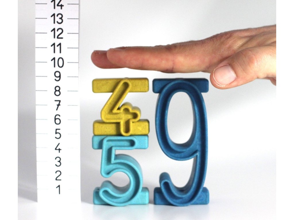 Sada 11 dřevěných číslic od 1 do 10 v přitažlivých barvách, které slouží ke hraní, ale jsou také vynikající učební pomůckou. Číselná hodnota každého čísla odpovídá jeho výšce v centimetrech. Číslo 1 je vysoké 1 cm, číslo 2 je vysoké 2 cm a tak dále. Čím vyšší číslo je, tím větší má číselnou hodnotu. Děti se tak naučí zábavnou formou řadit čísla podle velikosti, porovnávat je, sčítat a odčítat. Čísla jsou vyrobena z pevného 100% recyklovaného materiálu s certifikací PEFC, který je po použití opakovaně recyklovatelný. Všechna čísla jsou široká 4 cm s hloubkou 3 cm. Zabaleno v kartonové krabici včetně kontrolního pravítka a návodu. Hlavní vlastnosti: inspirováno Montessoriobsahuje 11 dílů (po jedné číslici 1-4 a 6-10 a 2x číslice 5)vhodné jako učební pomůcka pro seznámení se základy matematikyvyrobeno ze 100% recyklovaného dřeva s certifikací PEFCvyrobeno v Německu