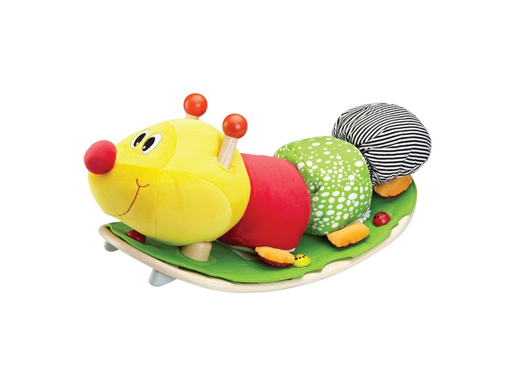 Měkká a pestrobarevná houpací hračka s přátelským charakterem, která přinese spousty zábavy. Dětem pomůže s rozvojem motoriky, rovnováhy, procvičením svalů rukou i nohou a zároveň poslouží jako krásná dekorace pokoje! Textilní část houpačky můžete oddělit, roztomilá housenka tedy může posloužit také jako velký plyšák. V nose housenky je vestavěné chrastítko s jemným zvukem. Základna houpačky je vyrobena z masivního dřeva a je opatřena dorazy zajišťujícími bezpečnost proti převrácení. Hlavní vlastnosti:oddělitelná textilní částvestavěné chrastítko