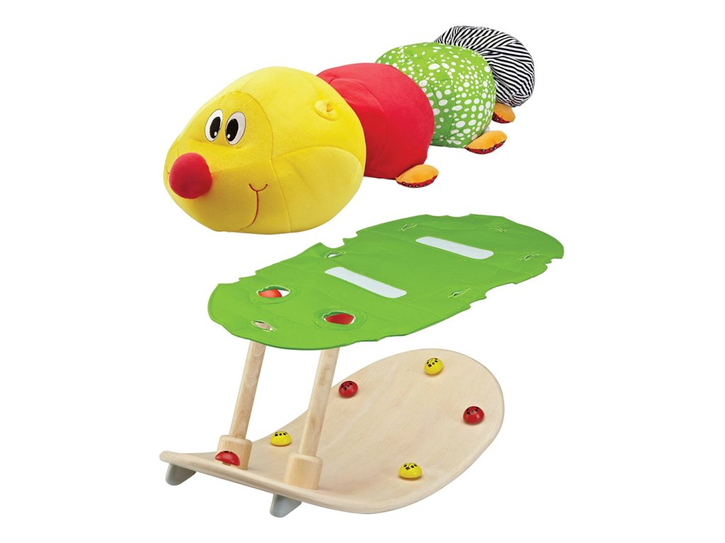 Měkká a pestrobarevná houpací hračka s přátelským charakterem, která přinese spousty zábavy. Dětem pomůže s rozvojem motoriky, rovnováhy, procvičením svalů rukou i nohou a zároveň poslouží jako krásná dekorace pokoje! Textilní část houpačky můžete oddělit, roztomilá housenka tedy může posloužit také jako velký plyšák. V nose housenky je vestavěné chrastítko s jemným zvukem. Základna houpačky je vyrobena z masivního dřeva a je opatřena dorazy zajišťujícími bezpečnost proti převrácení. Hlavní vlastnosti:oddělitelná textilní částvestavěné chrastítko