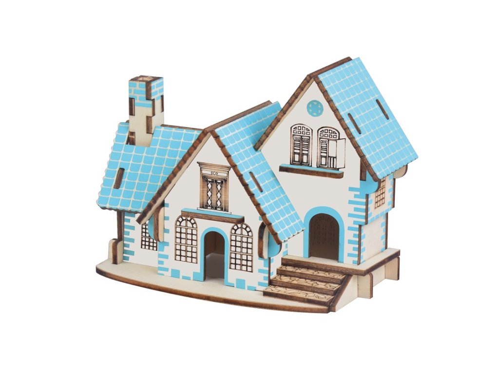 Woodcraft Dřevěné 3D puzzle Modrý dům
