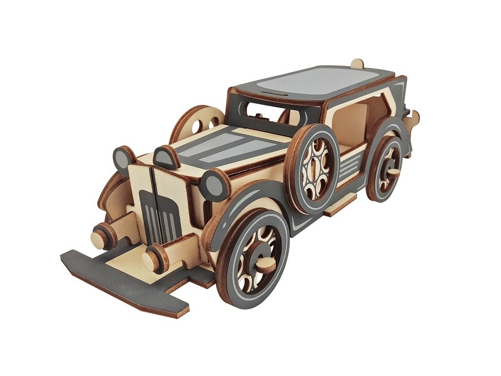 Tato série dřevěných hraček 3D puzzlí je určena především pro pány chlapce a jejich tatínky, kteří se rádi se svými dětmi vracejí do svého dětství. Jedná se spíše o jednodušší až středně těžké 3D puzzle dopravních prostředků a různých strojů od historických aut, motorek, moderních sporťáků přes bojovou techniku, stavební stroje až po lokomotivy – to vše z krásného dřeva, ať už přírodního nebo barevného. U většiny sestavených modelů lze otáčet koly spíše symbolicky jen k dokreslení pohybu, nesnaží se předvést věrohodnou jízdu. To ovšem dětem nebrání, představit si za dřevěnou hračkou dokonalý dětský svět. Dřevěné 3D puzzle nejsou určeny pouze pro vystavení na polici, ale protože jsou jejich díly moudře spojeny, mohou být použity jako rovnocenné dřevěné hračky pro každodenní hraní. Jsou vyrobeny ze 3 nebo 5 mm silné kvalitní překližky a jsou dodávány v nesloženém tvaru, baleny ve fólii. Jednotlivé díly z dřevěné překližky jednoduše vymáčknete a podle přiloženého návodu skládáte krásné plnohodnotné dřevěné hračky. Dětem se tak rozvíjí jejich myšlení, jemná motorika a představivost. Dřevěné 3D Puzzle nemusíte lepit lepidlem, poté je lze kdykoli rozložit a znovu složit. Doporučujeme si ponechat návod na stavbu. Přírodní dřevěné 3D puzzle si mohou děti i samy vybarvit podle své fantazie. Barevné dřevěné 3D puzzle jsou opatřeny kvalitním potiskem. Jsou určeny dětem od 3 let a splňují všechny normy EU. Upozornění: Není vhodné pro děti do 3 let, protože obsahuje malé součásti – hrozí nebezpečí udušení. Balící materiál není hračka. Hlavní vlastnosti: přírodní dřevěné 3D puzzlerozvíjí jemnou motoriku a představivostvhodné od 8 letjednoduchá obtížnost