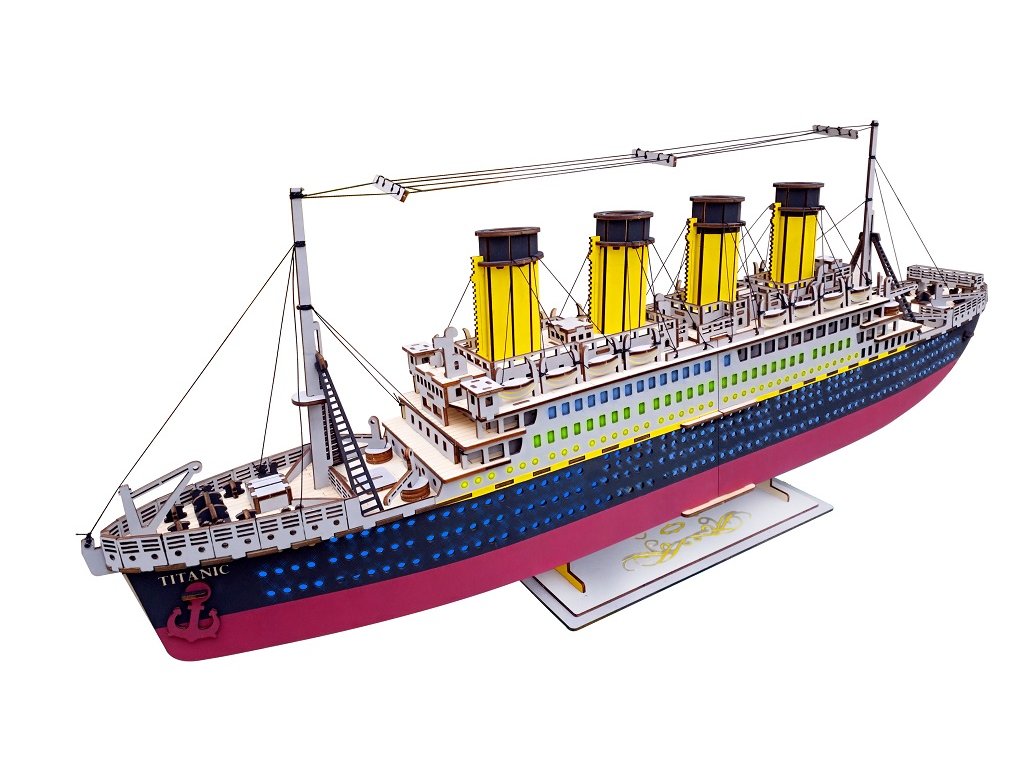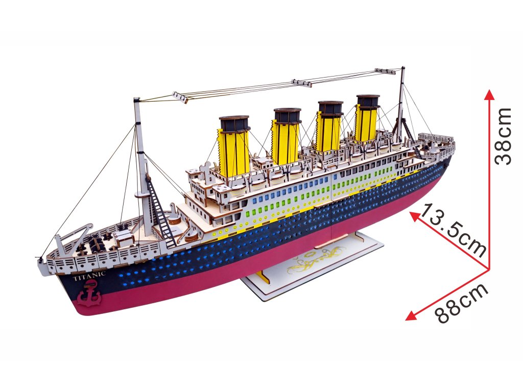 Stavba zaoceánského parníku může začít! Zkonstruovat Titanic zabralo dělníkům v loděnicích bezmála 3 roky. Jak dlouho jej však budete stavět Vy? Dřevěné 3D puzzle – dřevěná skládačka je vyrobena z 3 mm silné kvalitní překližky a je dodávána v nesloženém tvaru, baleno ve fólii. Jednotlivé díly z dřevěné překližky jednoduše vymáčknete prsty a dle přiloženého grafického návodu krok za krokem skládáte krásný dřevěný model. Dětem se tak rozvíjí jejich myšlení, jemná motorika a představivost. Dřevěné 3D puzzle nemusíte lepit lepidlem. Doporučujeme ponechat si návod ke stavbě. Díly jsou opatřeny kvalitním barevným potiskem. Tyto dřevěné hračky – dřevěné 3D puzzle jsou určeny starším dětem od 14 let a dospělým. Stavebnice splňuje normy EU. Upozornění: Není vhodné pro děti do 3 let, protože obsahuje malé součásti – hrozí nebezpečí udušení. Balící materiál není hračka. Hlavní vlastnosti: velký dřevěný model Titanicukvalitní překližka a barevný potiskstavba modelu rozvíjí jemnou motoriku a představivostvhodné od 8 lettěžká obtížnost