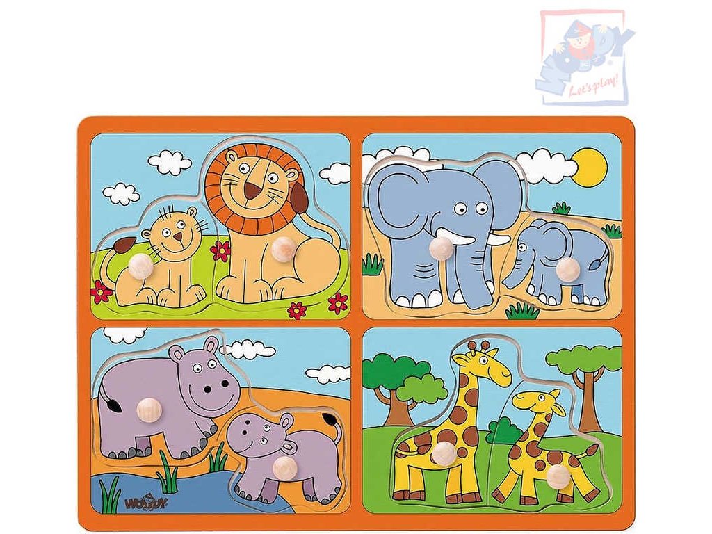 Puzzle z dílny českých návrhářů je určeno pro nejmenší děti. Jeden díl puzzle tvoří mládě a druhý dospělý. Úkolem dítěte je logicky a podle tvaru přiřadit zvířátka k sobě. Puzzle je vybaveno úchyty pro