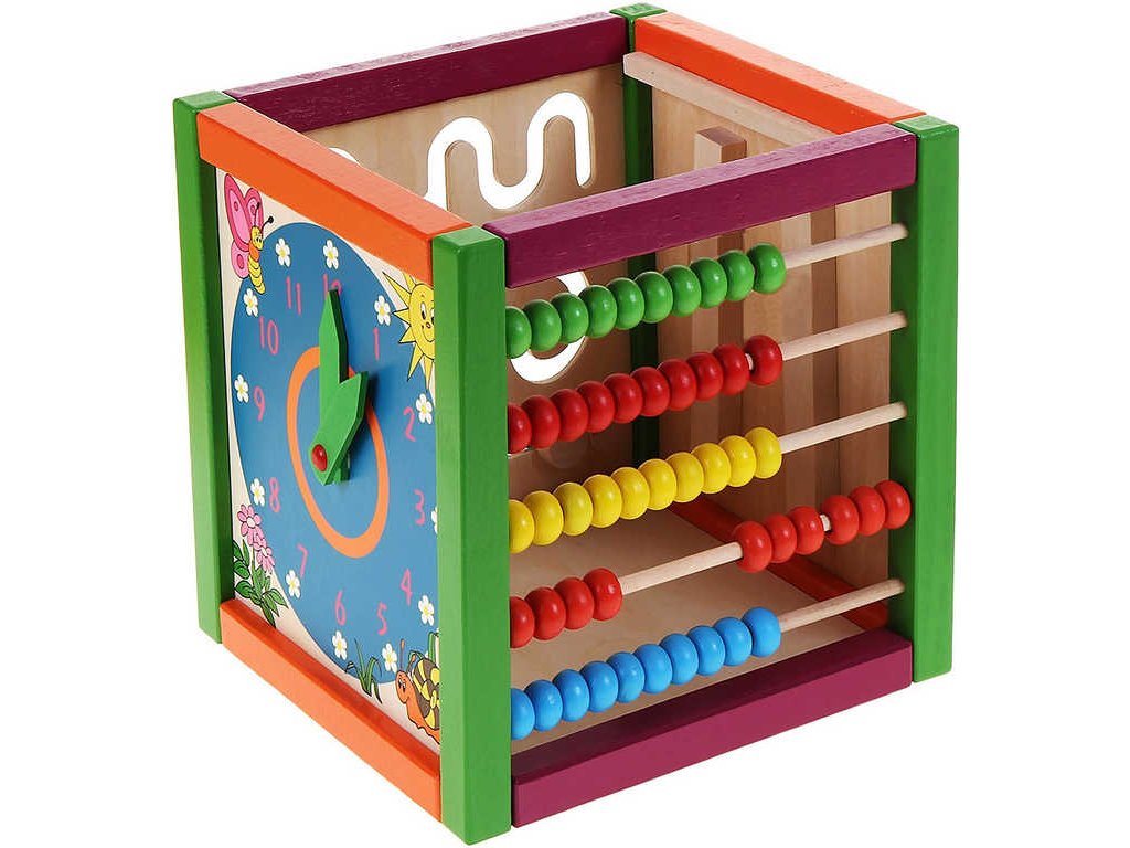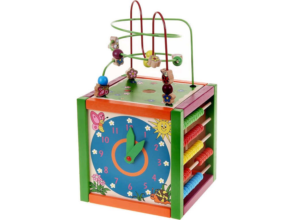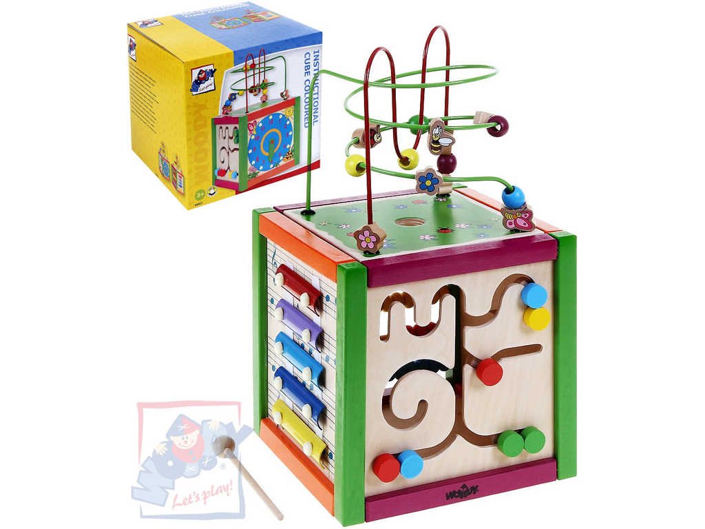 Didaktická kostka barevná: labyrint, počítadlo, xylofon, hodiny