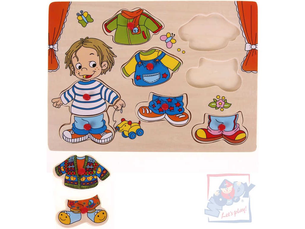 WOODY DŘEVO Oblékání na desce puzzle Sebastian dřevěná vkládačka