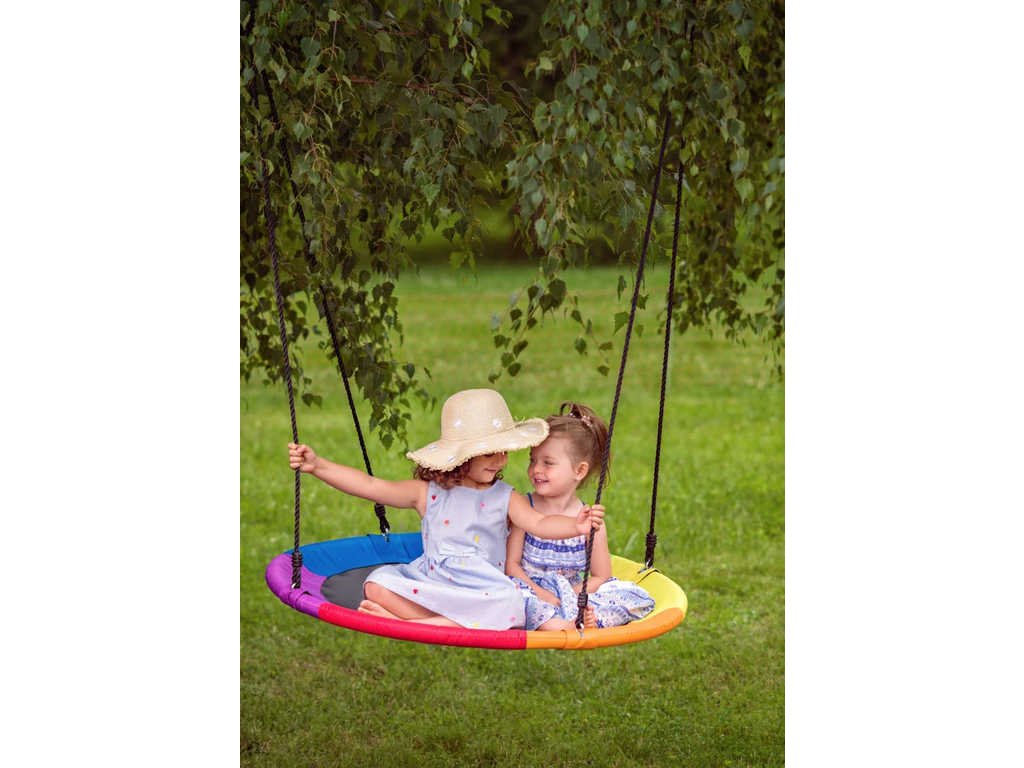 plachtu, která zajistí vaší ratolesti nebo i vám maximální pohodlí a bezpečí. Duhový obvod, který celou houpačku rozzáří, si děti hned zamilují. Houpací kruh Woody vám skvěle poslouží k pohoupání, ale i