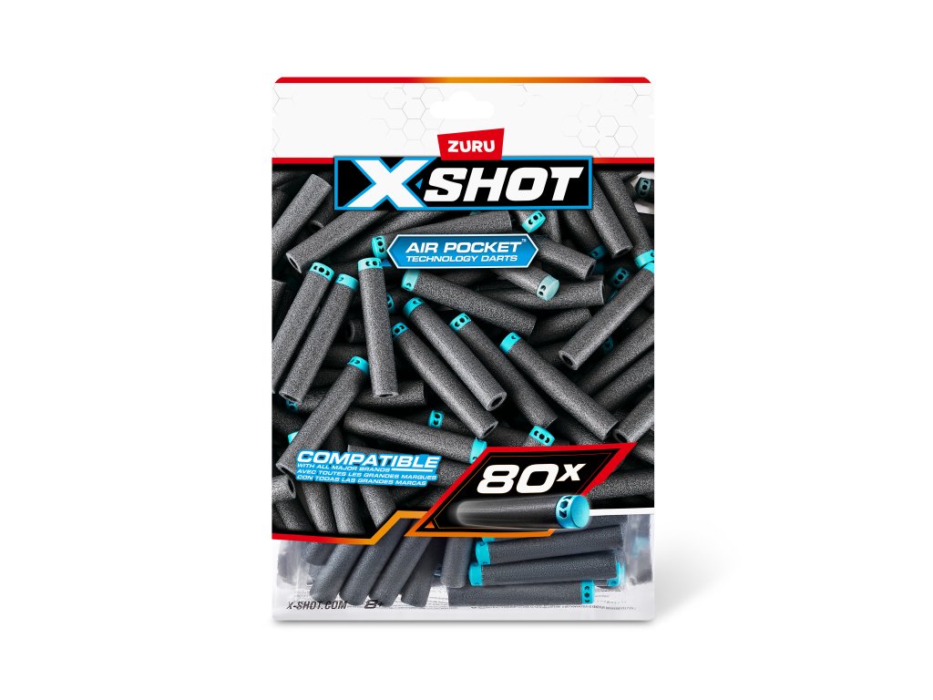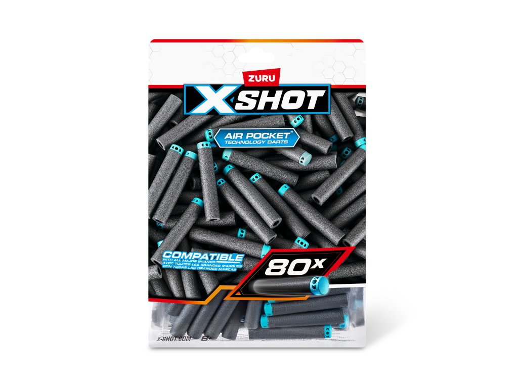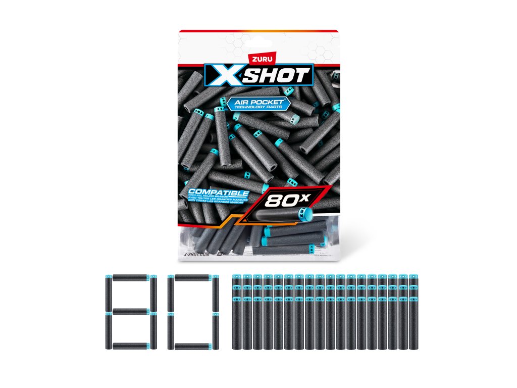 Nenechte si ujít žádnou příležitost a buďte vždy připraveni s tímto praktickým doplňovacím balením, které obsahuje 80 pěnových šipek! Šipky X-Shot s technologií Air Pocket (Vzduchová kapsa) jsou navrženy tak, aby létaly dále, rychleji a přesněji. Jsou vyrobeny z úžasné lehké pěny a nabízejí nejlepší výkon. Velkou výhodou je, že šipky X-Shot jsou kompatibilní s většinou předních značek pěnových blasterů (pistolí). Součástí balení je také uzamykatelný sáček pro snadné skladování a přenášení po skončení bitvy. Už nikdy Vám nedojde munice! S 80 extra šipkami budete zásobeni a připraveni na jakoukoli bitvu, zatímco vaši protivníci budou utíkat.