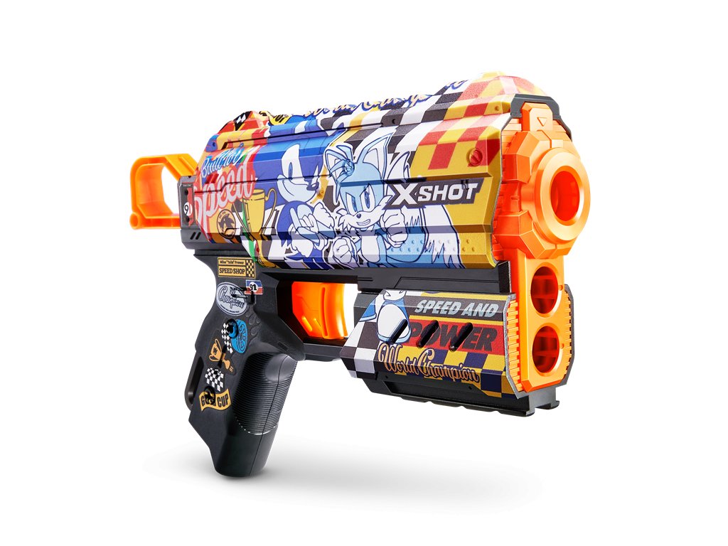 Zbavte svůj blaster superzvukovou rychlostí ježka Sonic! Vyberte si kůži Sonic the Hedgehog a připojte se k bitvě se Sonicem, Tailsem a Knucklesem. Díky kapacitě jedné šipky a přednímu úložnému prostoru pro 2 šipky, mechanismus se snadným nabíjením znamená, že jste vždy připraveni k bitvě. Flux může zasáhnout cíle až do vzdálenosti 27 m / 90 stop a po každém výbuchu se vrátí zpět pro maximální výkon. Šipky X-Shot Skins zahrnují technologii Air Pocket pro rychlejší, delší a přesnější střelbu. Vyberte si jiný, zvolte X-Shot Skins.