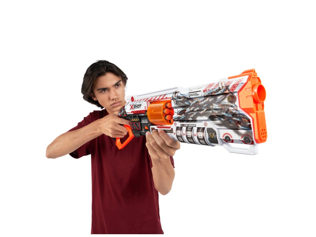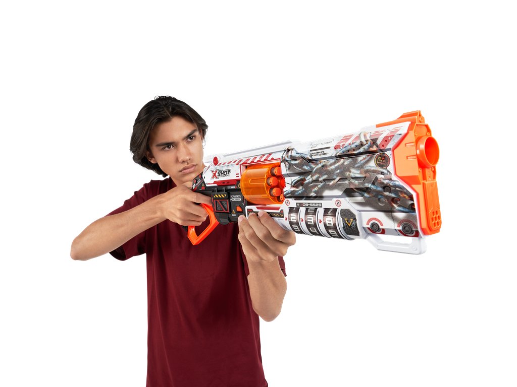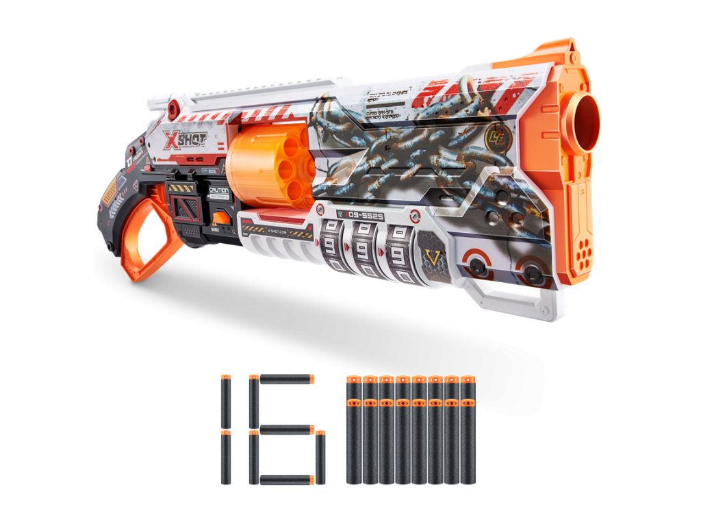 X-Shot Skins Lock Blaster dává sílu do vašich rukou! Každý Lock Blaster je dodáván s QR kódem, který odhalí vaši jedinečnou kombinaci zámku. Odemkněte svůj blaster a začněte se bavit! Lock Blaster má otočnou hlaveň se 6 šipkami, která prostřelí šipky během několika sekund a zasáhne cíle až do vzdálenosti 27 m / 90 stop! Až bitvy skončí, uzamkněte svůj blaster a nikdo jiný jej nebude moci použít. Vyberte si jiný, zvolte X-Shot Skins. Locking Blaster: X-Shot Skins Lock Blaster lze použít pouze po odemčení. Nedovolte nikomu znovu použít váš blaster bez povolení tím, že jej po použití uzamknete. Jedinečný kód: Najděte své jedinečné kombinace zámků pomocí QR kódu a odemkněte svůj blaster. Palebná síla: X-Shot Skins Lock Blaster dokáže zničit nepřátele až na vzdálenost 27 m / 90 stop! Kapacita šipek: X-Shot Skins Lock Blaster má impozantní automatickou otočnou hlaveň s kapacitou 8 šipek, která dokáže prostřelit šipky během několika sekund! Technologie Air Pocket: X-Shot Skins obsahuje šipky technologie Air Pocket pro další, rychlejší a přesnější nápor!