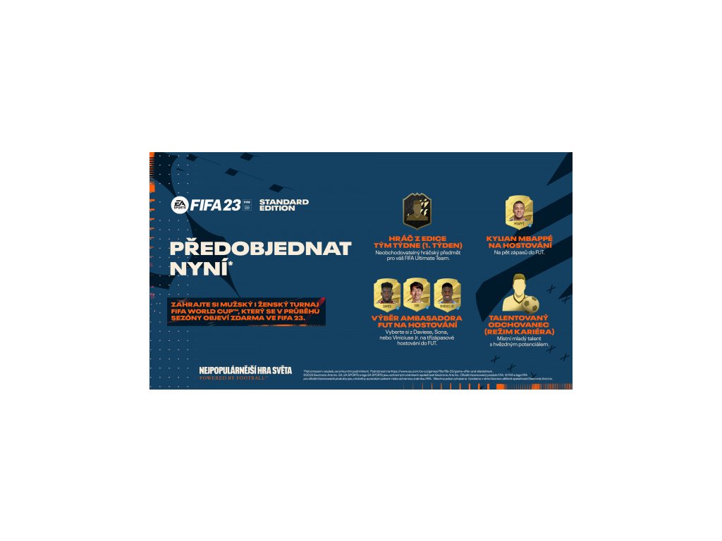 EA SPORTS™ FIFA 23 přináší do nejpopulárnější hry světa ještě více akce a fotbalového realismu. Vylepšená technologie HyperMotion2 s dvojnásobným počtem nasnímaných pohybů ze skutečného světa pomáhá vytvořit opravdovější fotbalové animace než kdy předtím. Zahrajte si za ženské i mužské týmy s podporou dedikovaných animací a využijte možnost hraní napříč platformami, které usnadňuje měření sil s přáteli.