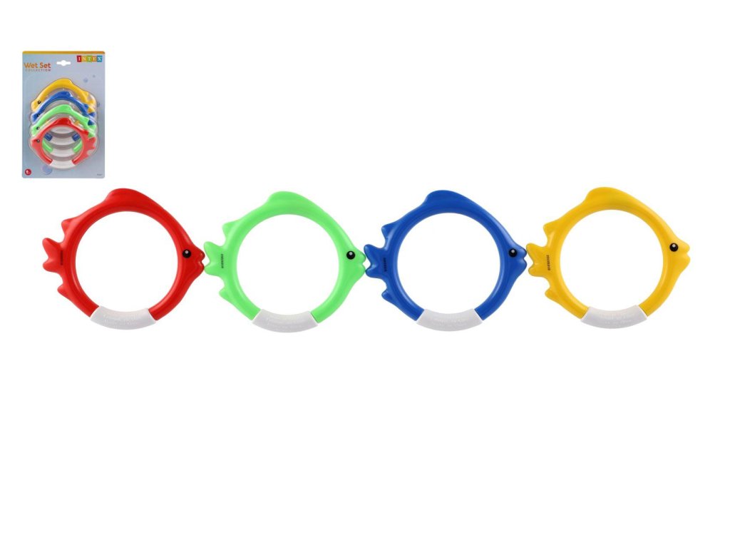 Zábavné kruhy/ryby 4ks pro potápění ve vodě plast 10cm na kartě