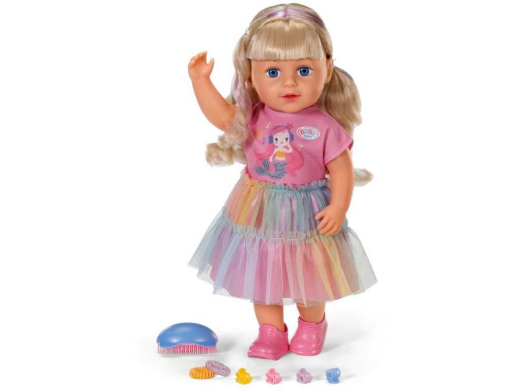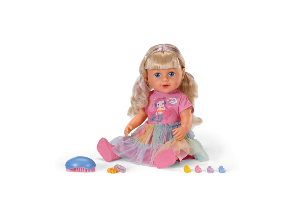 BABY born Carla má krásné, vysoce kvalitní vlásky a součástí je 7 doplňků na česání.