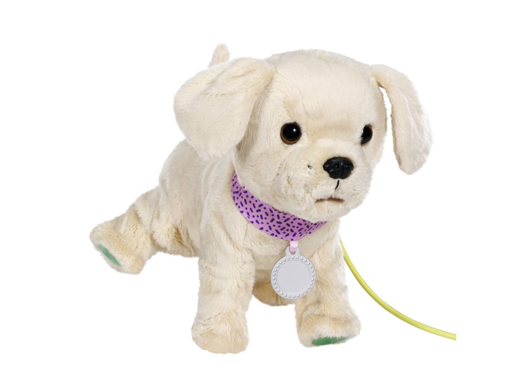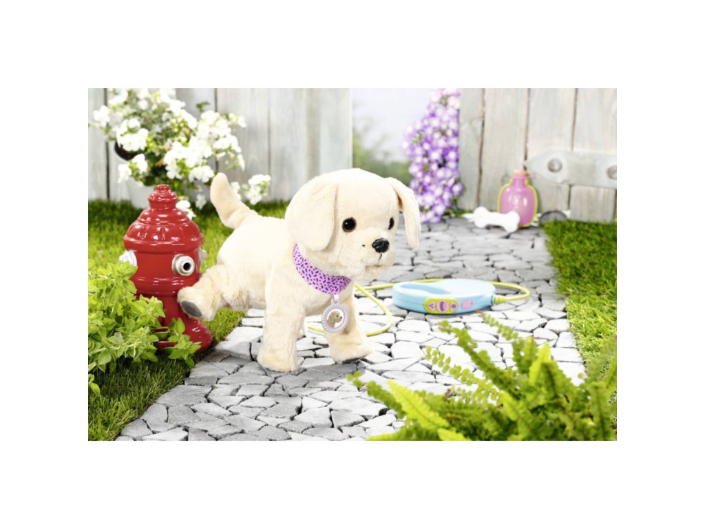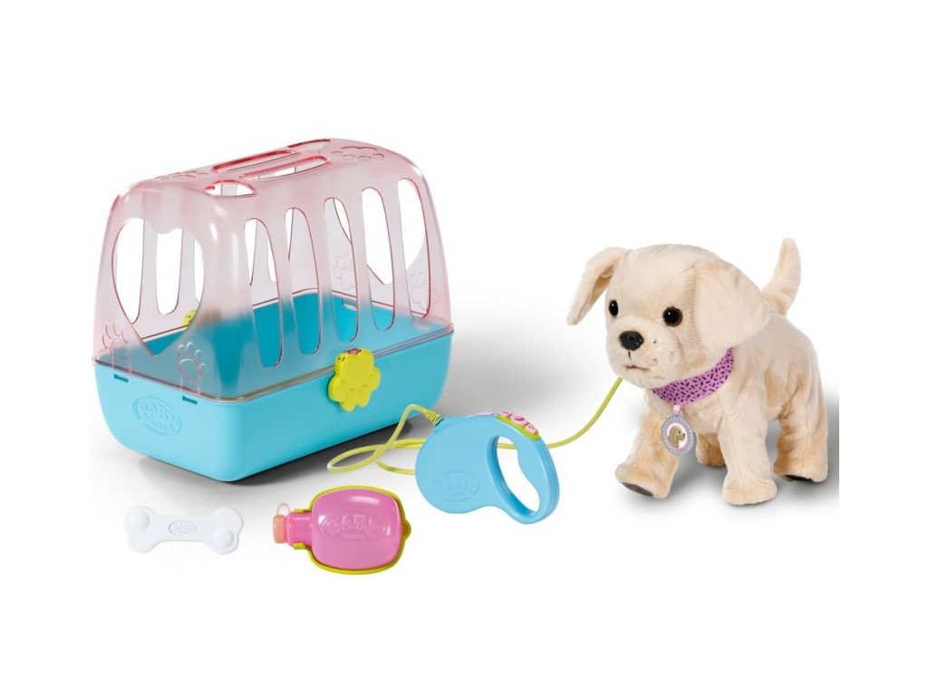 Kamarád BABY born, veselý pejsek, chodí na vodítku a vesele štěká. Když ho pohladíte po zádech, vrtí ocáskem a uslyšíte roztomilé psí zvuky. Umí pít vodu ze své mističky. Skloní hlavu, vyplázne jazyk a je slyšet, jak srká. Poté, co se napije, zvedne nohu a vyčůrá se. Skoro jako opravdový pejsek! Samozřejmě potřebuje i svou kostičku: pokud ji pejskovi přidržíte před čumáčkem, uslyšíte zvuky chroupání. Jeho box využijete nejen při cestování, ale také jako místo, kde může pejsek odpočívat.
