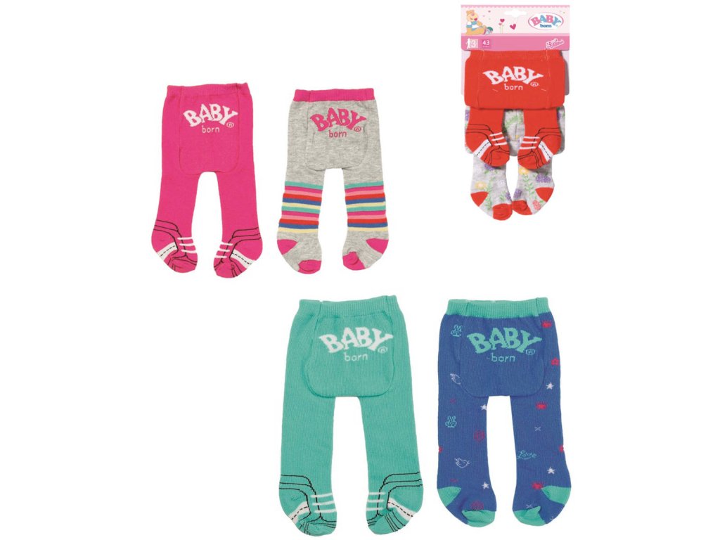 BABY born Punčocháče ve třech různých provedeních v balení po 2 kusech. Kvalitní oblečení pro originální panenku BABY born. Pro radost z nápadité, rozmanité a dlouhotrvající hry. Velmi snadné převlékání.