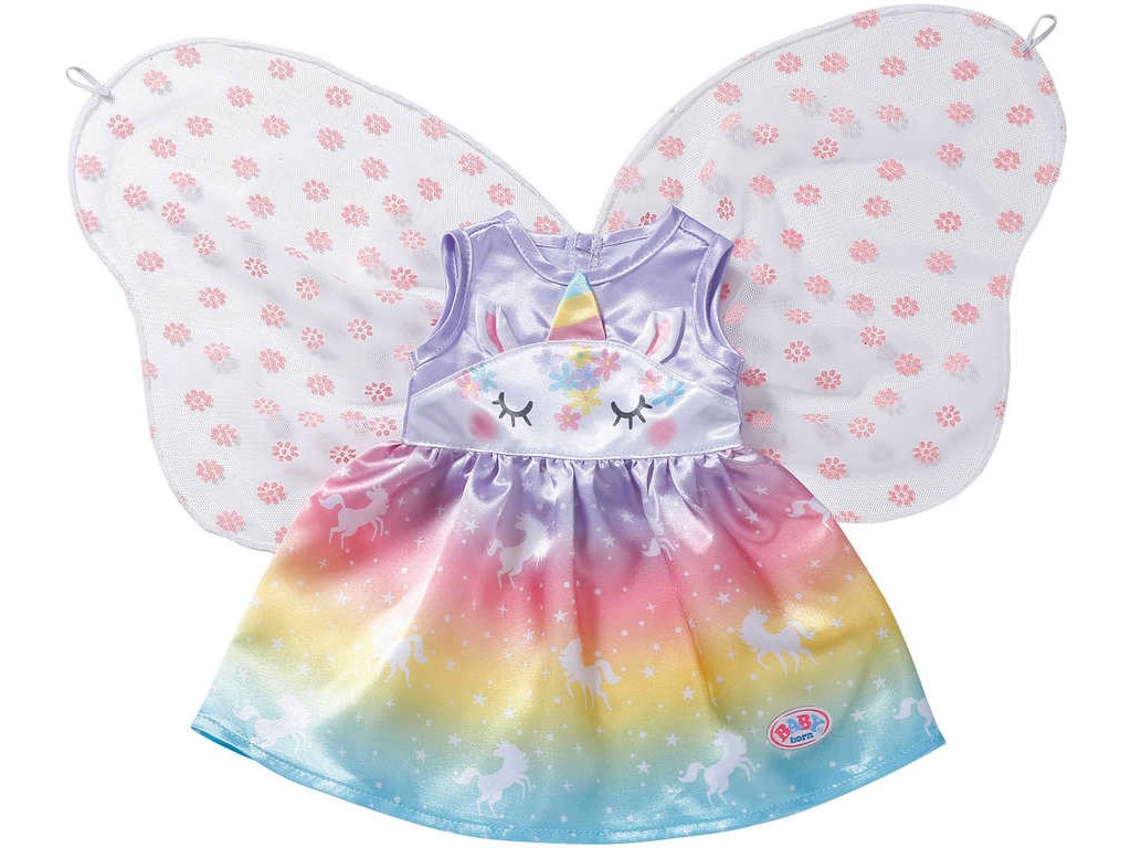 Originální obleček pro panenky BABY born. Pro nápaditou, rozmanitou a dlouhotrvající hru. BABY born Pohádkový kostým "Jednorožec" pro panenky ve velikosti 43cm. Součástí je ramínko.