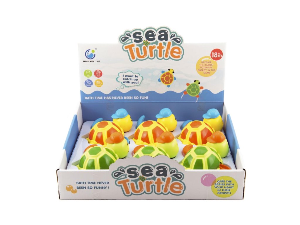 Želva na natažení do vody na klíček plast 12x12cm 2 barvy 6ks v boxu 18m+