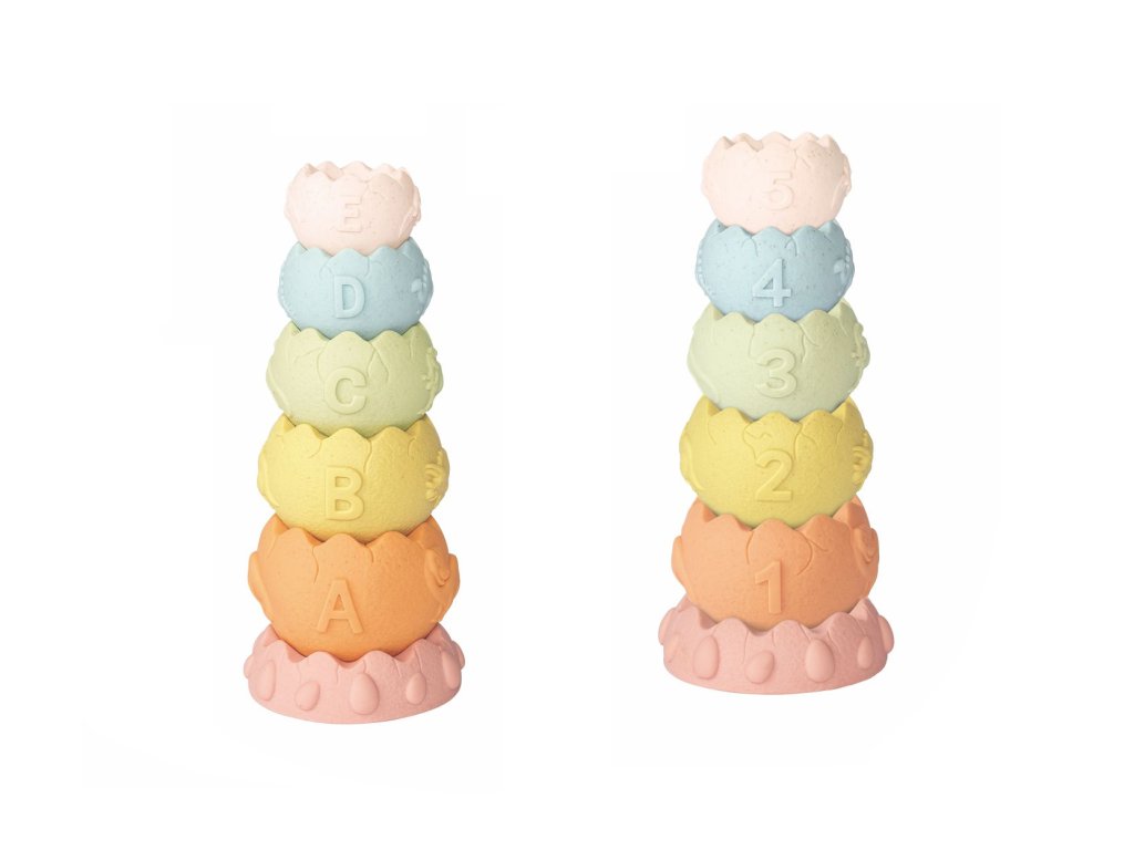 Veselé barevné tvary ve tvaru dinosauřích vajíček. Tato hračka podporuje jemnou motoriku nejmenších dětí.